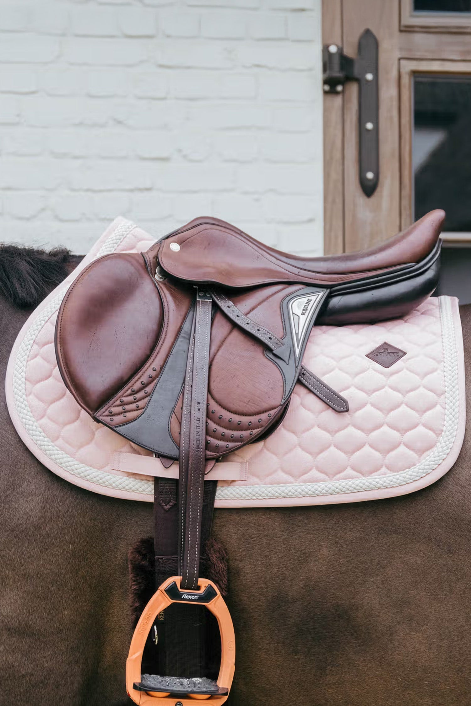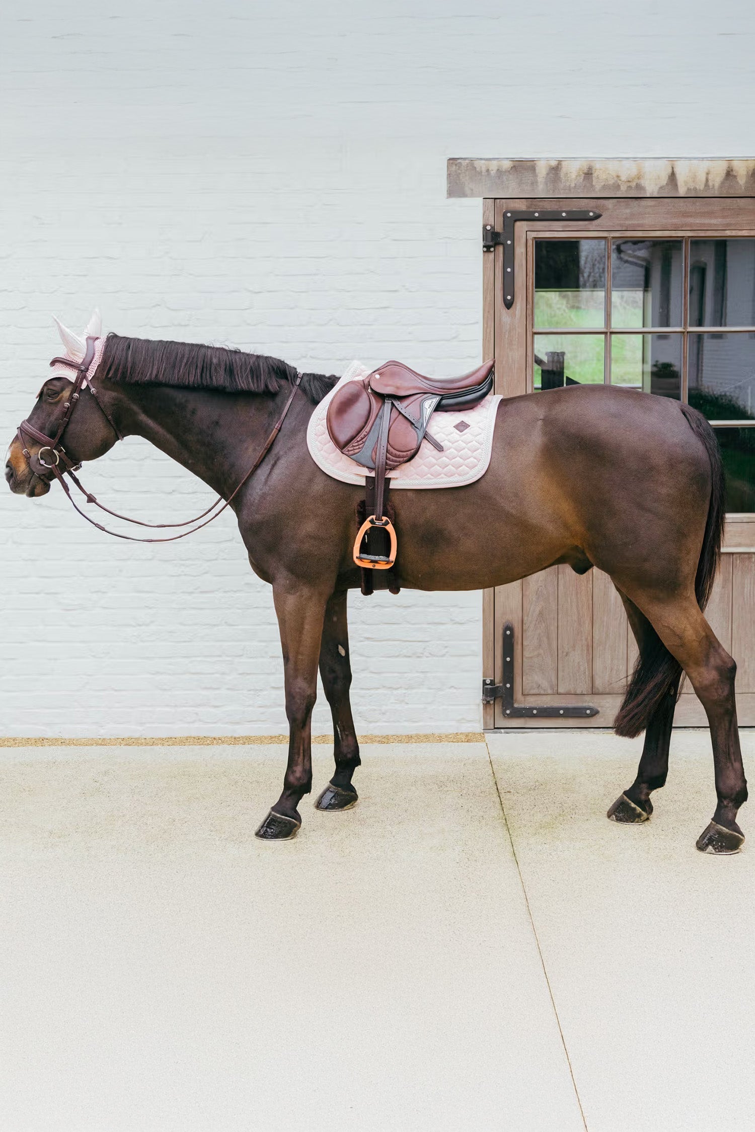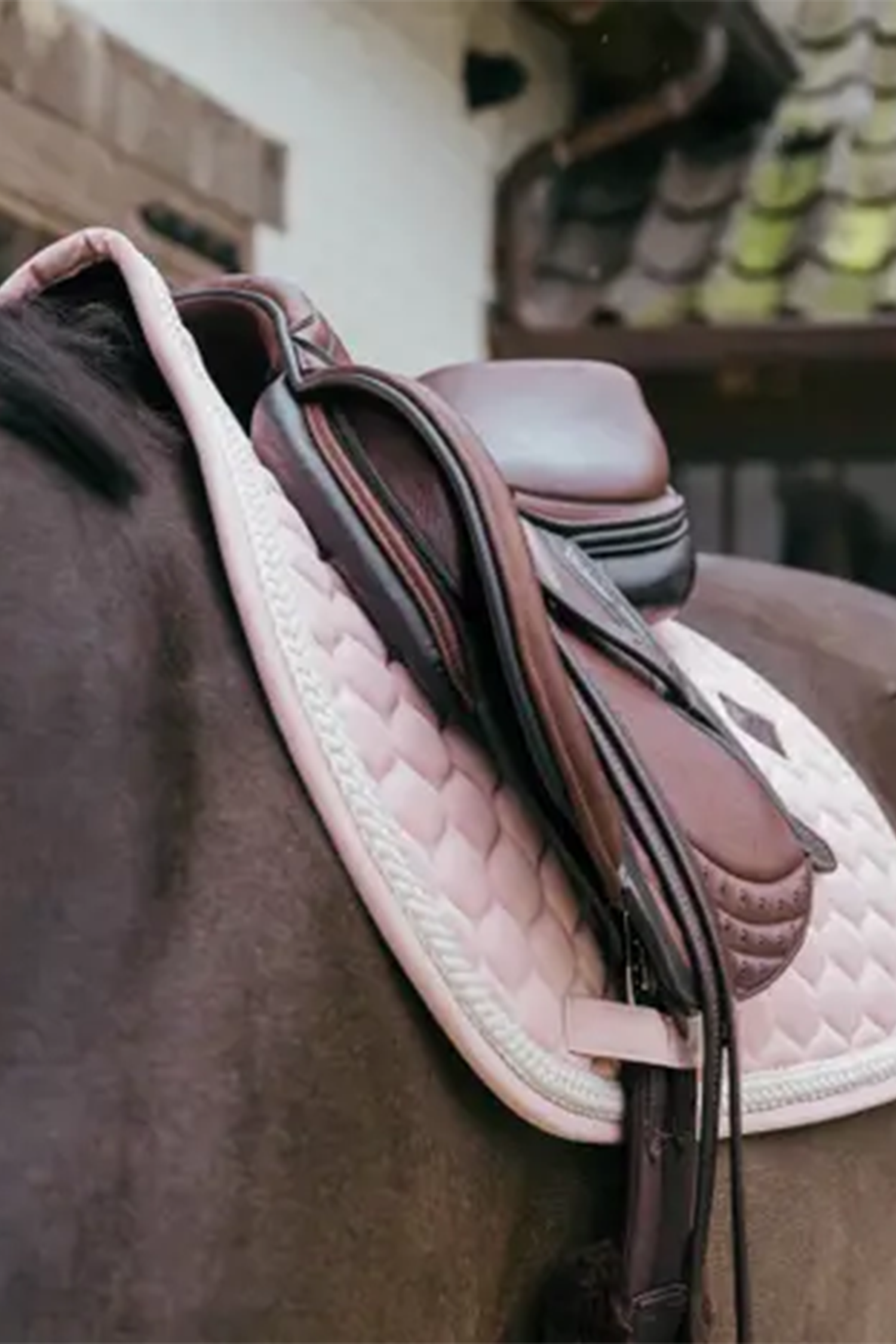 Un tapis de selle très élégant et en même temps fonctionnel, fabriqué avec les meilleurs matériaux et arborant un look classique grâce au cordon tressé.