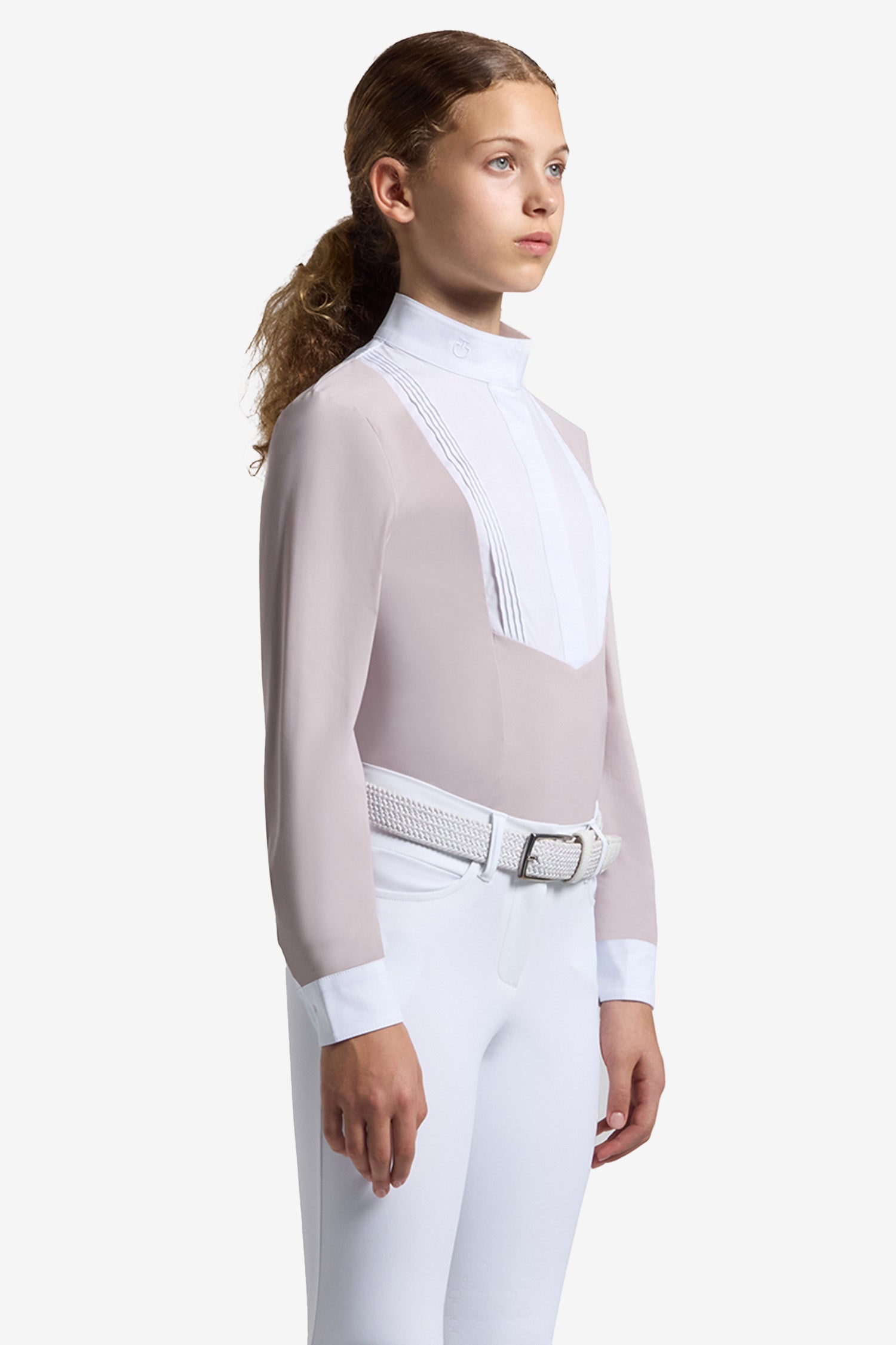 Le design classique de concours avec un panneau avant blanc et des détails sobres offre une allure sophistiquée conforme aux exigences des compétitions. Le col montant avec logo discret apporte une finition exclusive, tandis que la coupe est adaptée aux juniors.