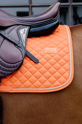 Un tapis de saut est un tapis de selle spécialement conçu pour le saut d'obstacles. Il est généralement coupé de façon anatomique pour offrir une liberté supplémentaire au niveau du garrot et il est plus court que les tapis polyvalents ou de dressage, afin de s'adapter à une selle de saut. Comment savoir si le tapis convient à votre selle ? Assurez-vous que le tapis ne glisse pas, qu'il repose uniformément sous la selle et qu'il ne comprime pas le garrot. Les tapis de saut existent dans de nombreux coloris, motifs et matériaux – parfaits pour assortir au reste de votre équipement.
