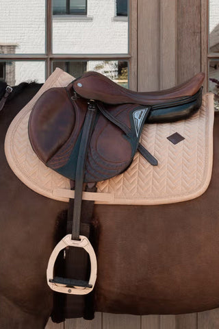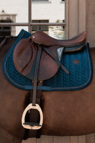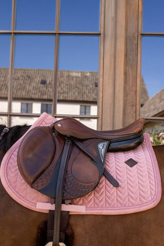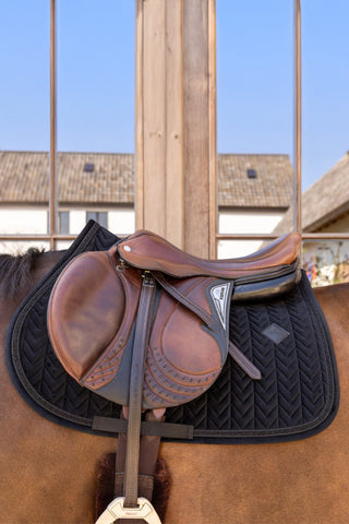 Un tapis de saut est un tapis de selle spécialement conçu pour le saut d'obstacles. Il est généralement coupé de façon anatomique pour offrir une liberté supplémentaire au niveau du garrot et il est plus court que les tapis polyvalents ou de dressage, afin de s'adapter à une selle de saut. Comment savoir si le tapis convient à votre selle ? Assurez-vous que le tapis ne glisse pas, qu'il repose uniformément sous la selle et qu'il ne comprime pas le garrot. Les tapis de saut existent dans de nombreux coloris, motifs et matériaux – parfaits pour assortir au reste de votre équipement.