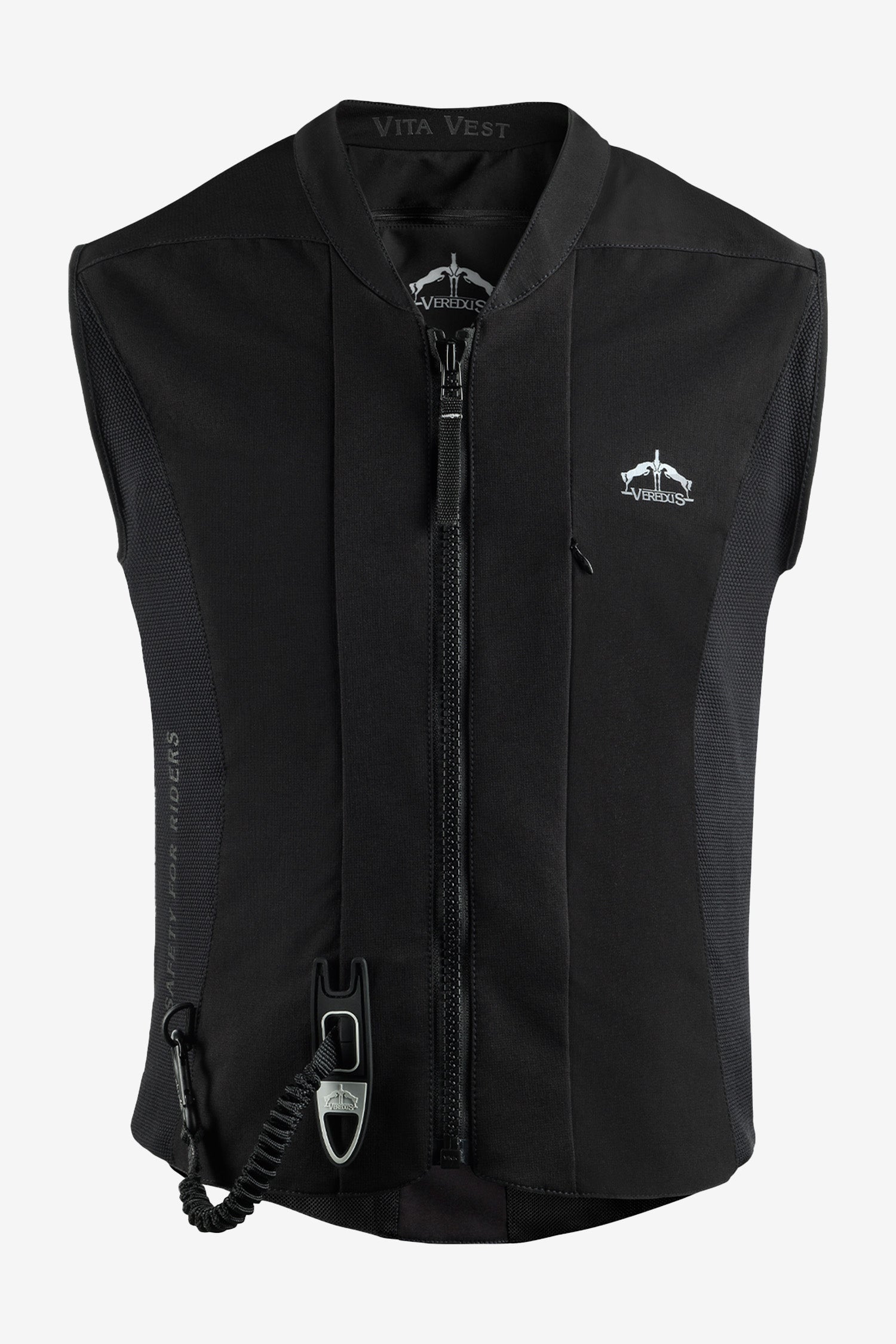 Le Veredus Vita Vest est un gilet d'équitation innovant avec airbag dorsal intégré et protection dorsale offrant une couverture complète sans zones non protégées. Ce gilet est conçu pour offrir une sécurité maximale associée à un grand confort et un design moderne – homologué pour l'entraînement et la compétition.
