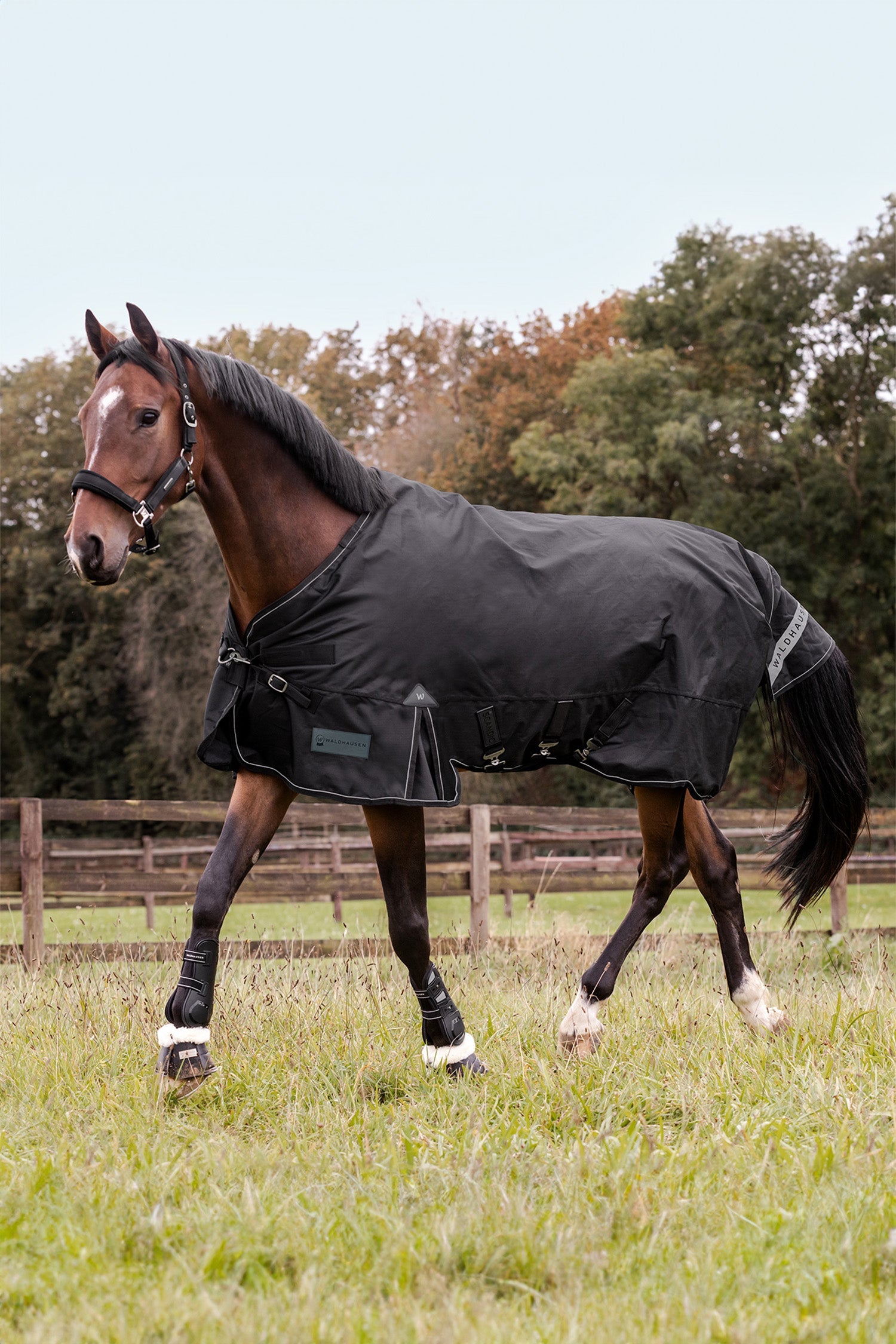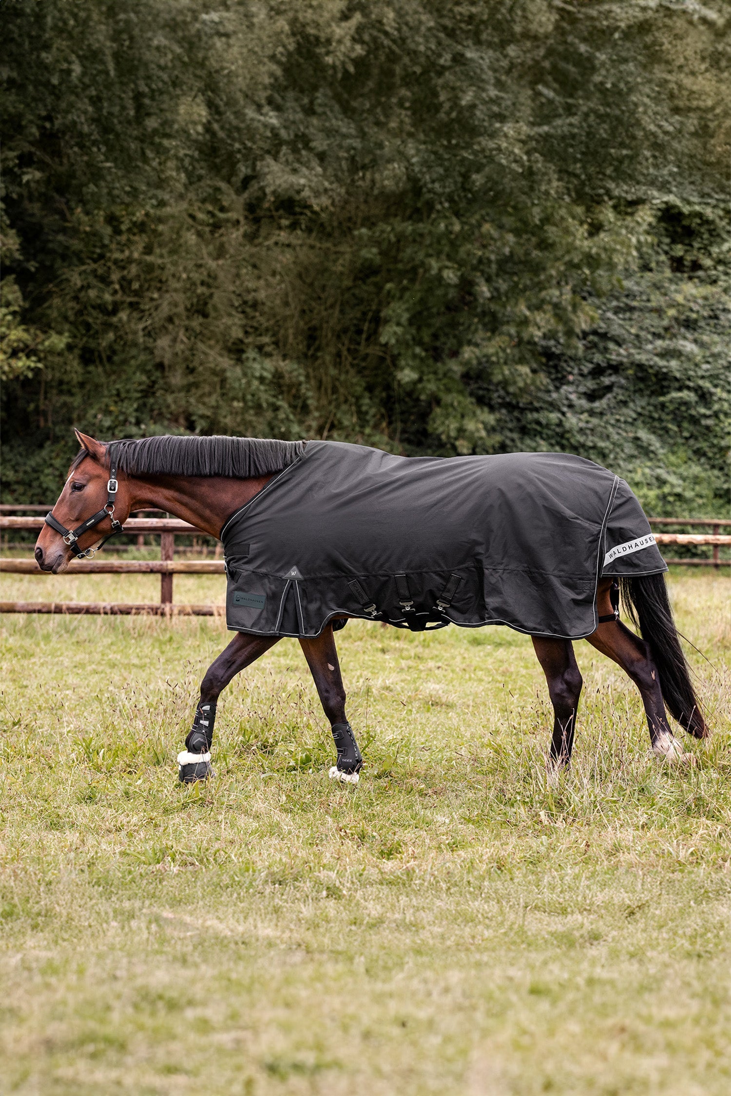 Cette couverture de Waldhausen est une combinaison parfaite de confort, de durabilité et de fonctionnalités intelligentes. Avec un tissu extérieur ripstop robuste de 1200 deniers, elle est à la fois imperméable (colonne d'eau de 3000 mm) et respirante, ce qui la rend idéale pour une utilisation quotidienne au paddock.