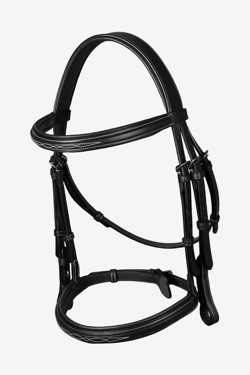 De cavesson-neusriem biedt een zachte maar effectieve controle en helpt het hoofd van het paard te stabiliseren zonder onnodige druk uit te oefenen. Zowel de neusriem als het frontriem zijn gevoerd voor een gelijkmatige drukverdeling en om schuren te voorkomen, wat zorgt voor veel comfort, zelfs tijdens langere ritten.