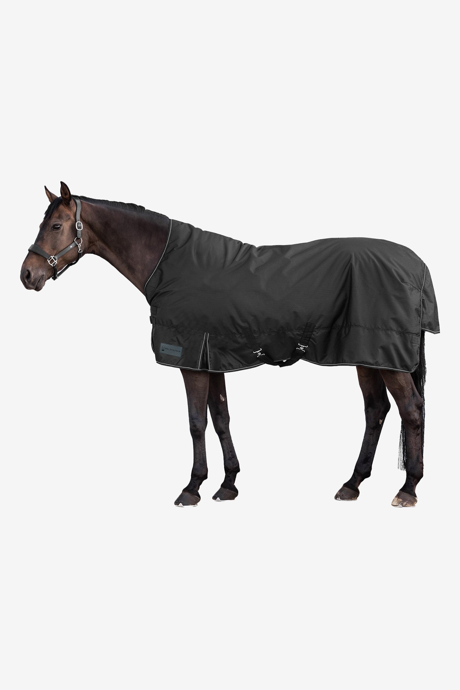 De perfecte keuze voor overgangsperiodes en mildere dagen – de Waldhausen Nordic Buitendeken Halve Hals, Light biedt je paard betrouwbare bescherming tegen weer en wind zonder te warm te worden. Het hoge halsmodel voorkomt schuren bij schoft en manenkam, terwijl de duurzame 600 denier ripstop-stof bestand is tegen zowel regen als dagelijks gebruik.