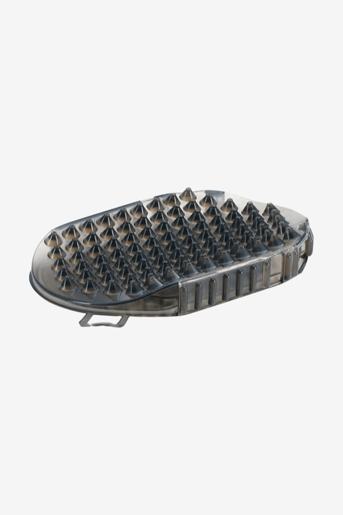 Je bevestigt hem eenvoudig over je hand en kunt twee verschillende zijden gebruiken om je paard te masseren.