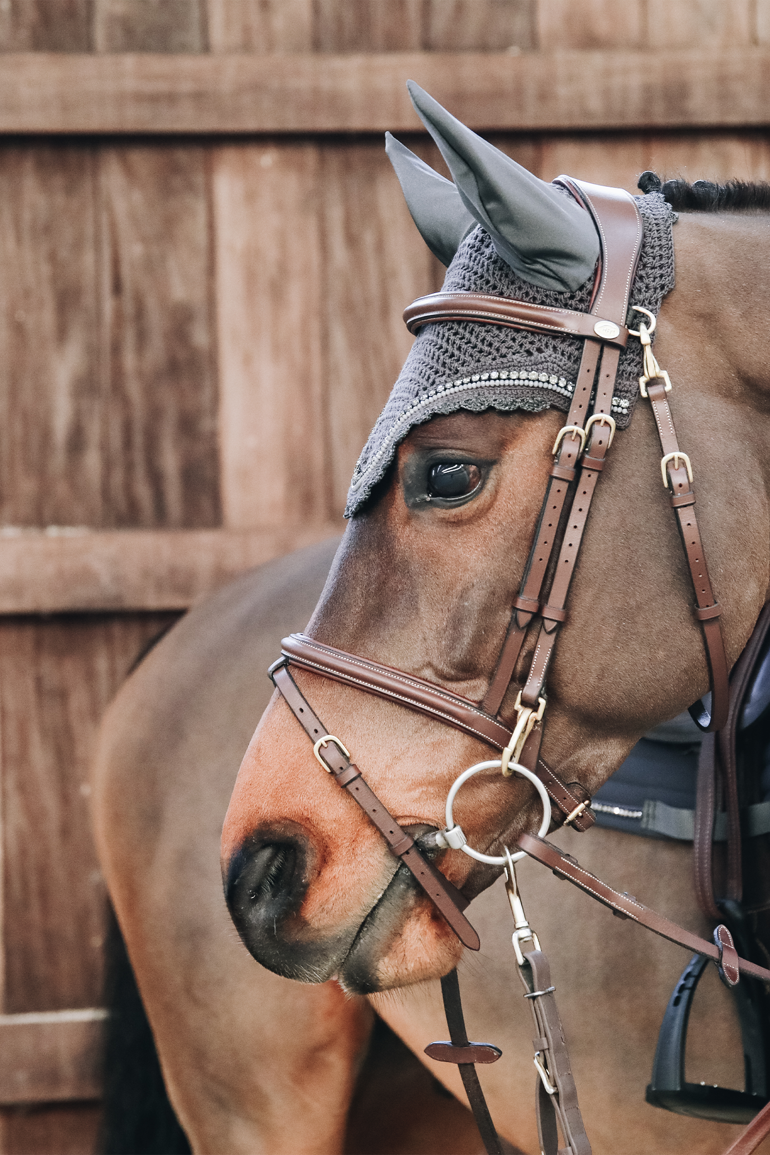 Klassieke oorflap van Kentucky met een slank design, fantastische pasvorm en gedetailleerd vakmanschap. Geïsoleerde oren die geluid voor het paard dempen.