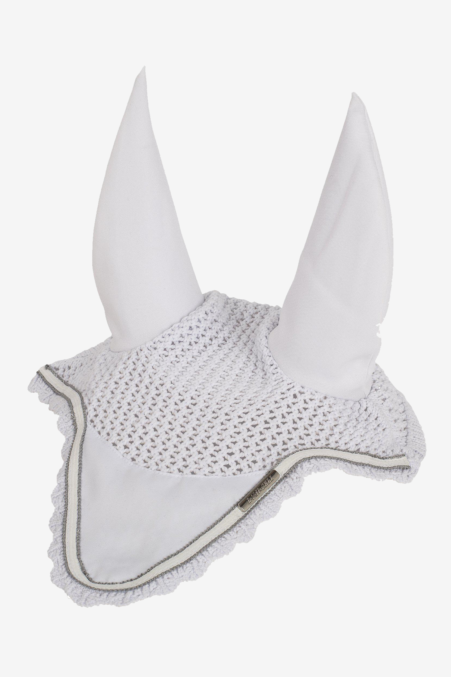 Het Venus oornet van Lami-Cell combineert klassiek gehaakt katoen met elastische oren voor een comfortabele pasvorm en effectieve demping van storende geluiden. Sierkoord met subtiele zilveren lurex en een stijlvol Lami-Cell metalen badge aan de linkerkant zorgen voor een verfijnde, wedstrijdklare afwerking.