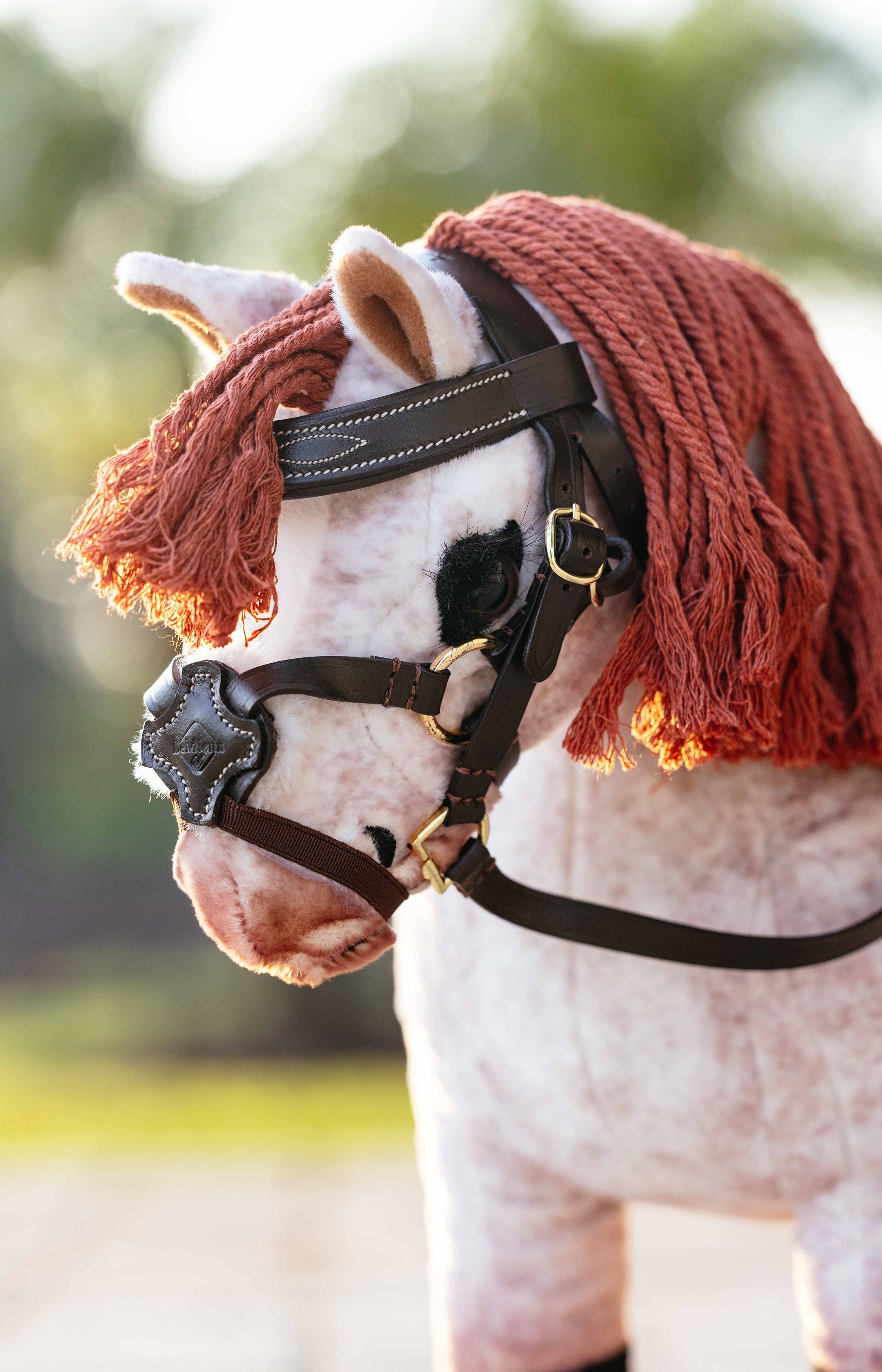 Met volledig verstelbare bakstukken, gekruiste neusriem en kinriem krijgen jonge ruiters de kans om te leren hoe een hoofdstel werkt en hoe je de pasvorm correct aanpast. Een leerzaam en leuk detail dat aanzet tot spelen, leren en interesse in paardenverzorging.