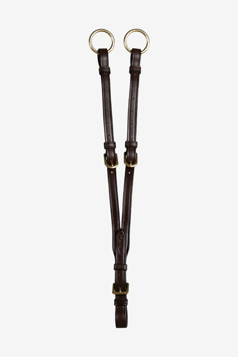 Een losse martingaal uit de Dyon Collection, gemaakt van zacht Europees premium leder, eenvoudig te bevestigen aan een borsttuig of halsriem om te voorkomen dat het paard het hoofd te hoog opheft.