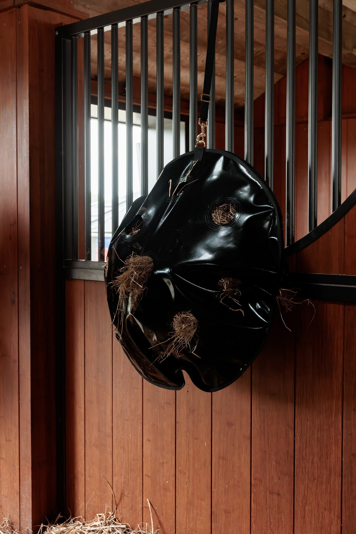 Met een capaciteit van 9–11 kg hooi of voordroog en robuuste materialen die zowel waterafstotend als slijtvast zijn, is deze slowfeeder ideaal voor zowel stal als buitengebruik. Dankzij de verstevigde openingen met dubbele stiksels en een praktische ritssluiting is het gebruik veilig en gemakkelijk.