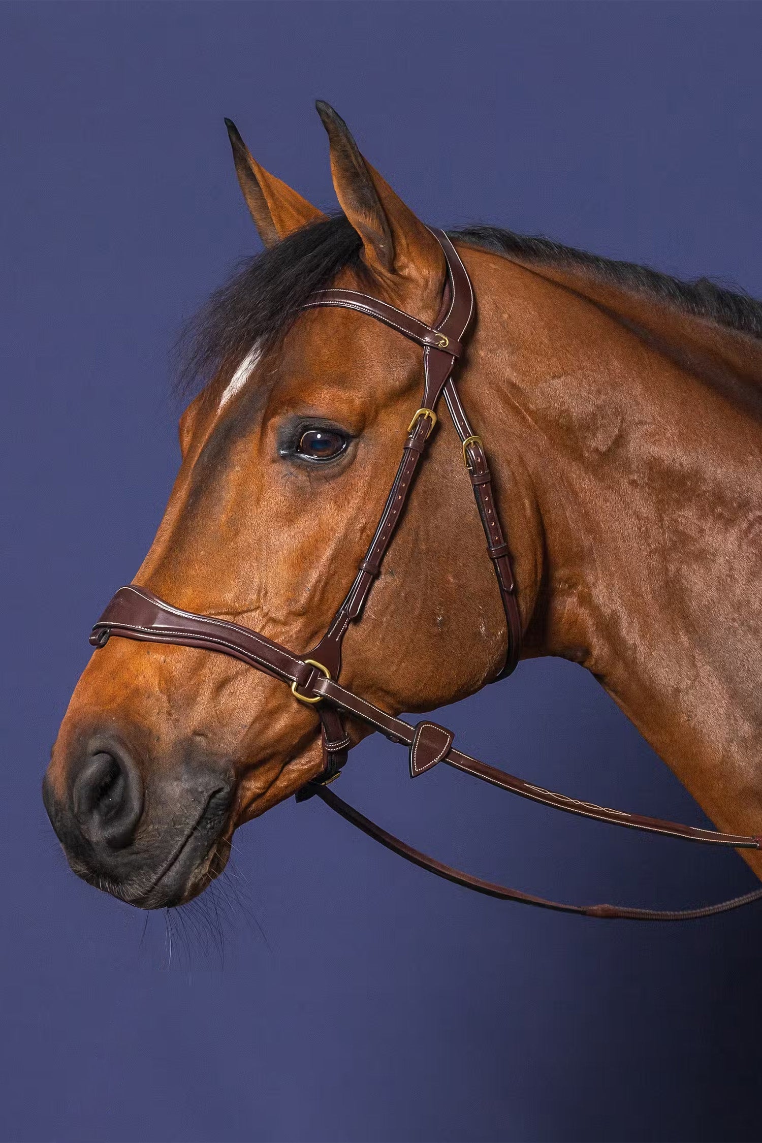 De teugels worden direct aan de D-ringen op de neusriem bevestigd.