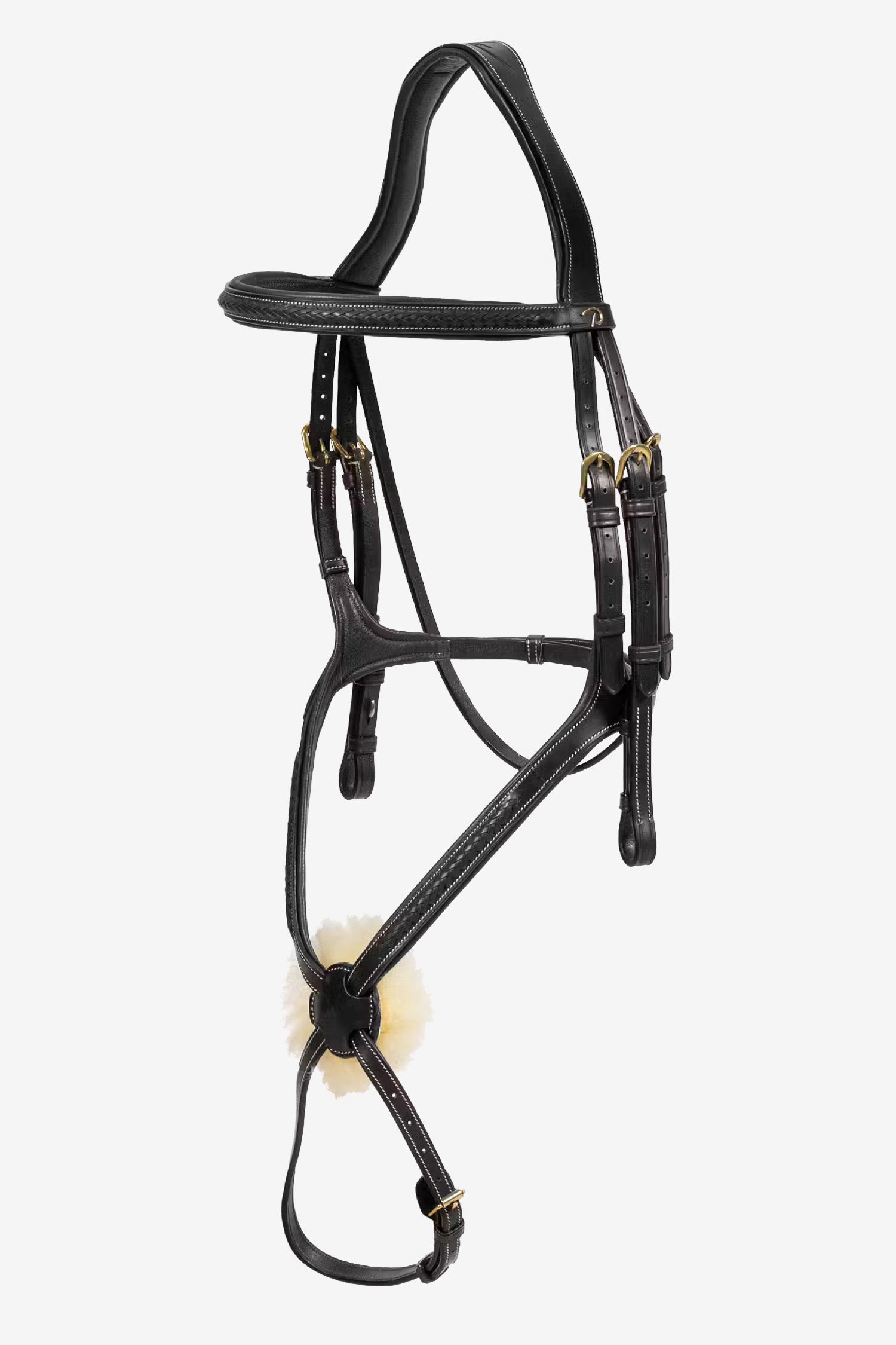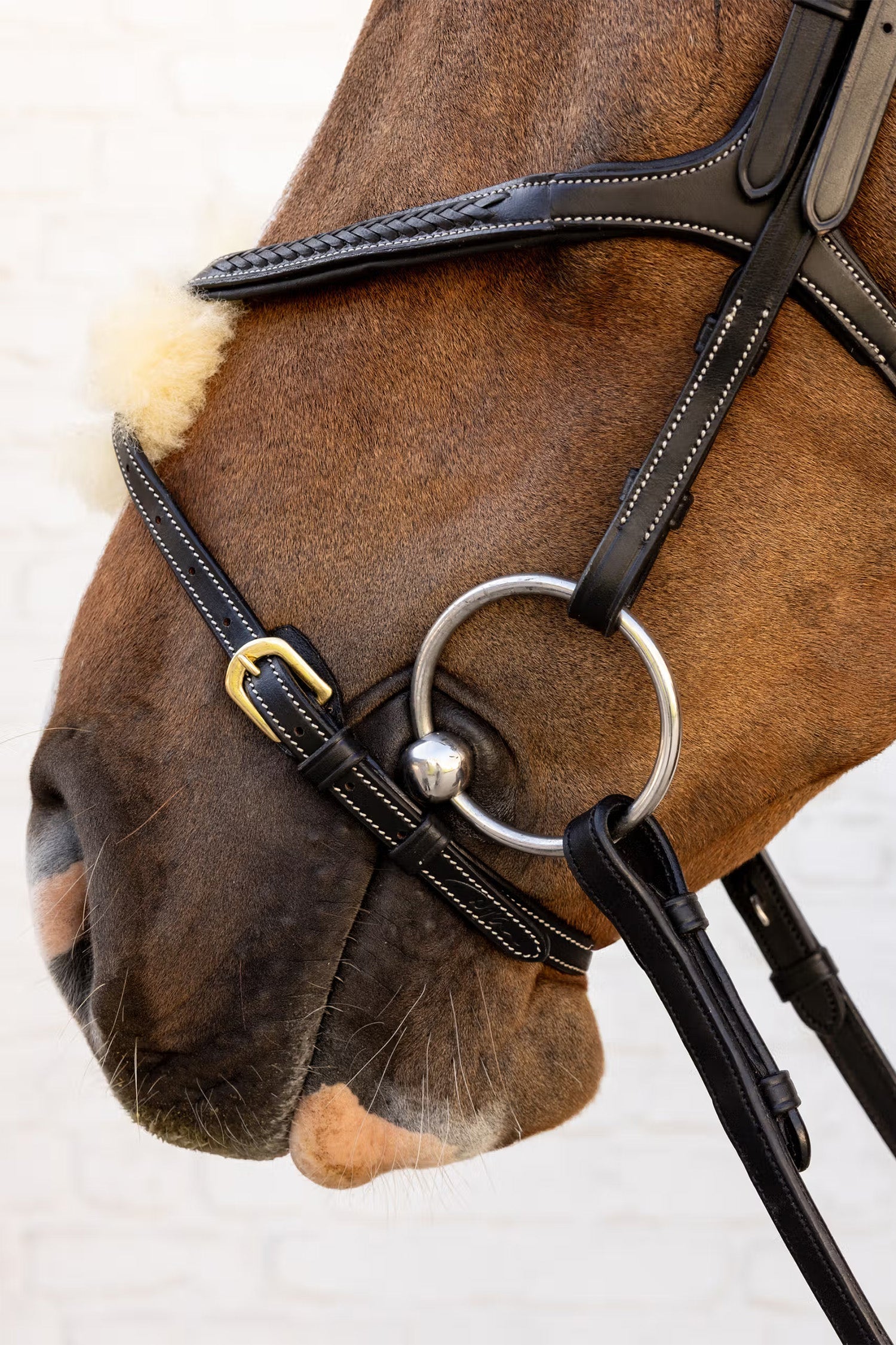 Vereenvoudig de balans tussen stijl, functionaliteit en comfort met het Gevlochten Figure 8 Neusriem Hoofdstel uit de exclusieve Dyón Collection. Dit hoofdstel is handgemaakt van zacht Europees premium leder en heeft een gevlochten ontwerp dat zorgt voor een verfijnde en klassieke uitstraling.