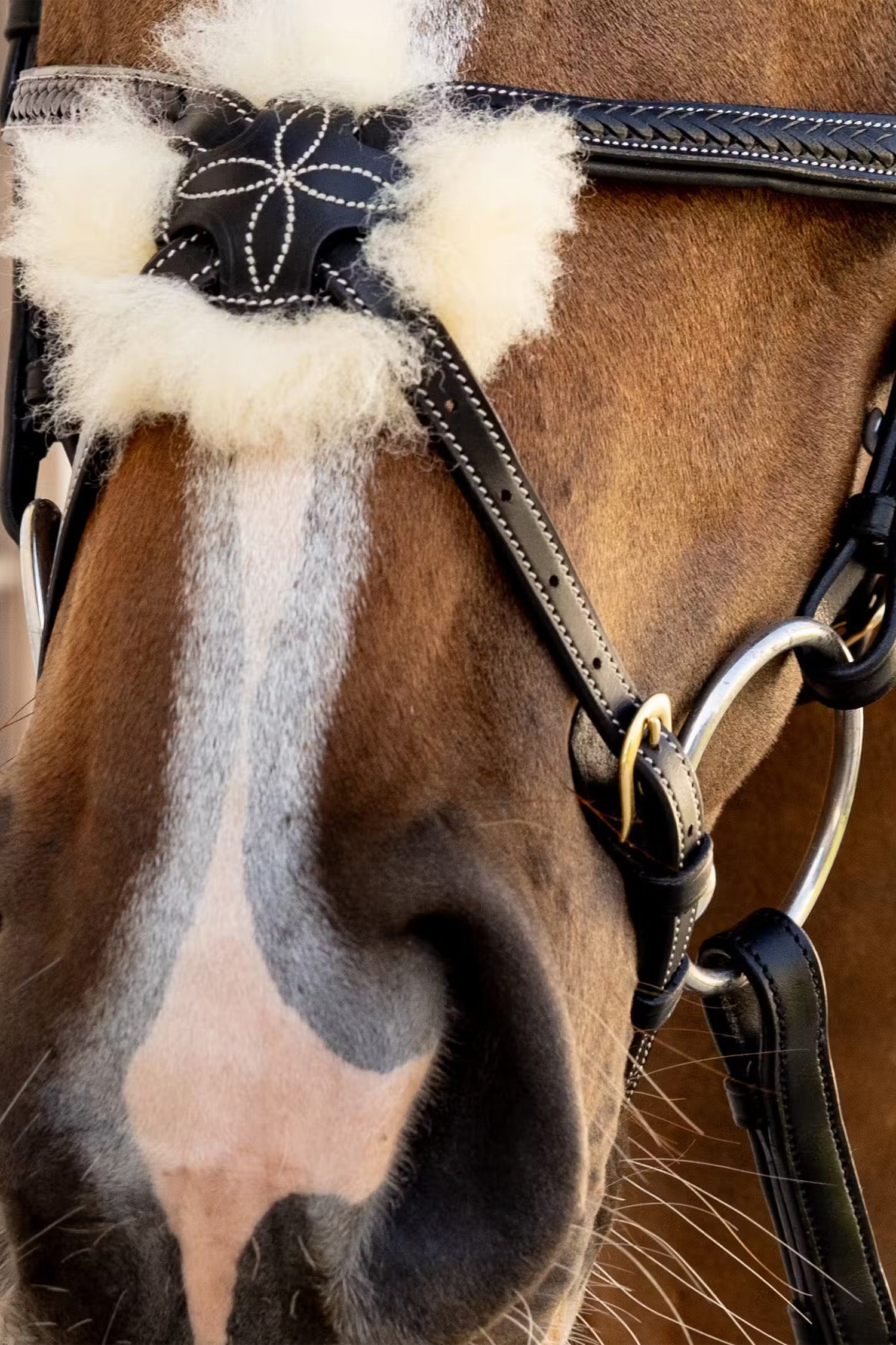Het hoofdstel heeft een Mexicaanse neusriem (Figure 8 / Grackle) die stabiliteit en controle biedt, terwijl het paard vrij kan ademen en onbelemmerd kan bewegen. De anatomische pasvorm is ontworpen om de druk gelijkmatig te verdelen en maximaal comfort te bieden tijdens zowel training als wedstrijd.