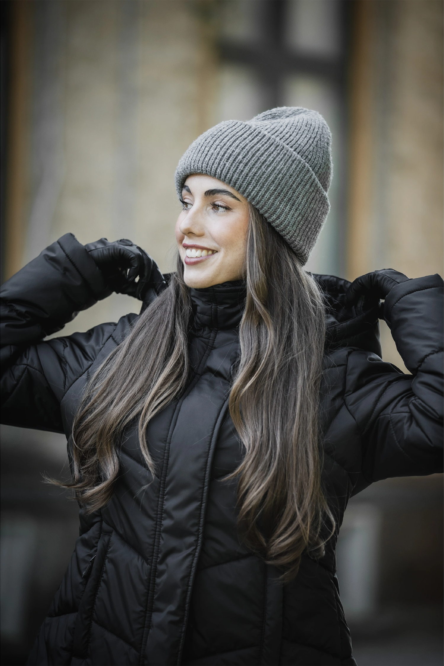 Mouwuiteinden met boorden en duimgaten om de warmte binnen te houden