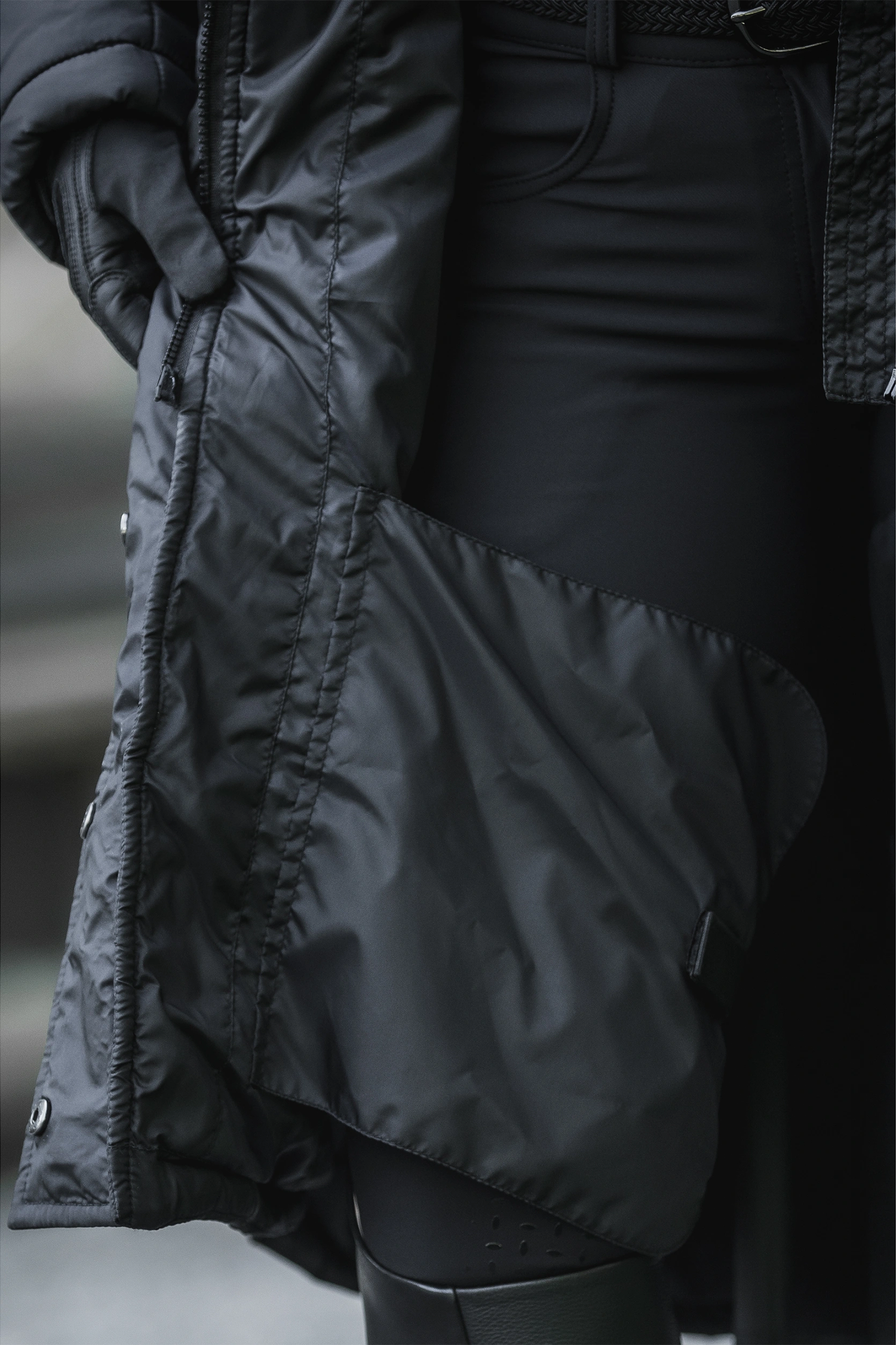 De afneembare en verstelbare capuchon is ontworpen om over een helm te dragen, en een slimme magneetsluiting op de rug houdt hem elegant op zijn plaats tijdens het rijden. De binnenkant heeft een exclusieve Horse Life-voering met subtiel patroon en ritsen met HL logo-trekkers – een stijlvolle afwerking die kwaliteit uitstraalt.