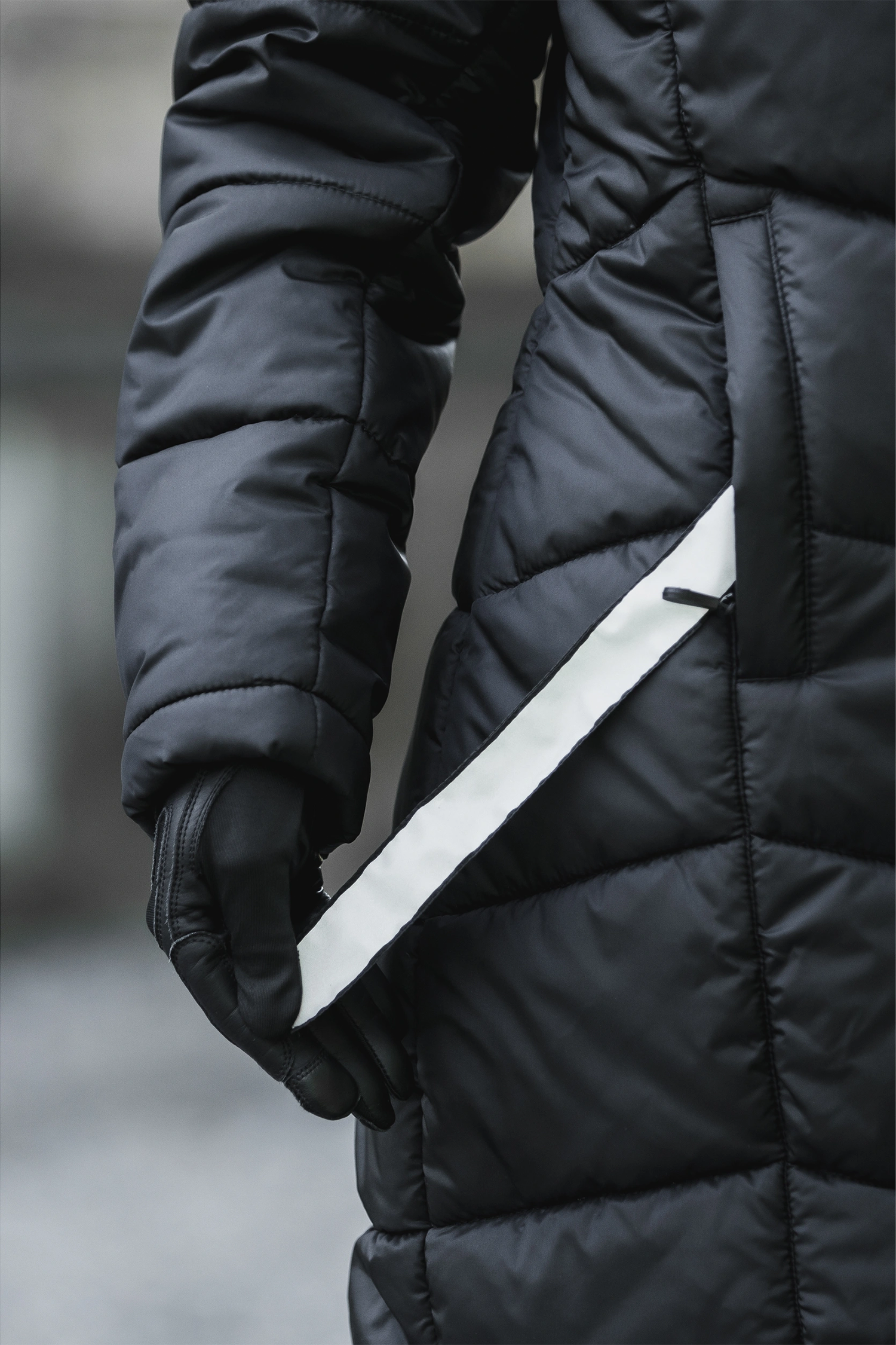 Uitklapbare reflecterende banden in de zakken voor extra zichtbaarheid in het donker
