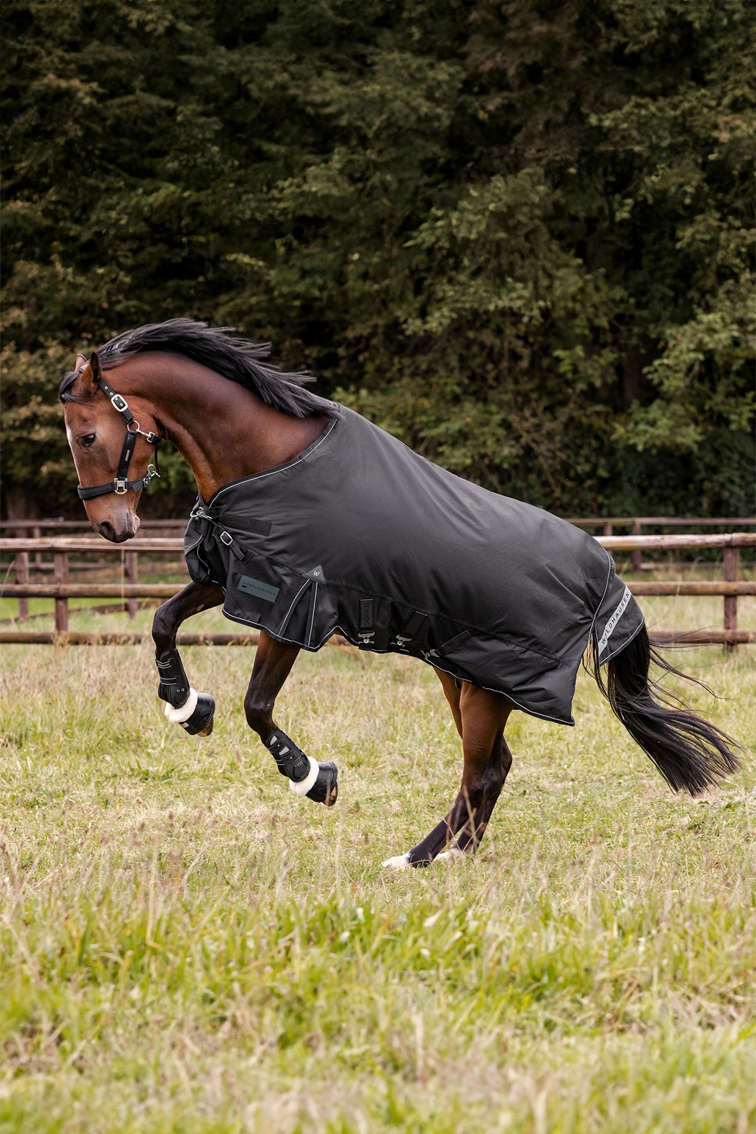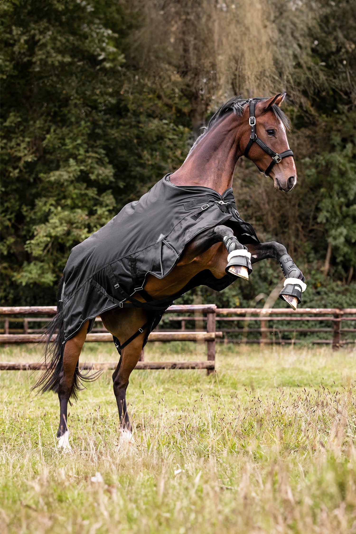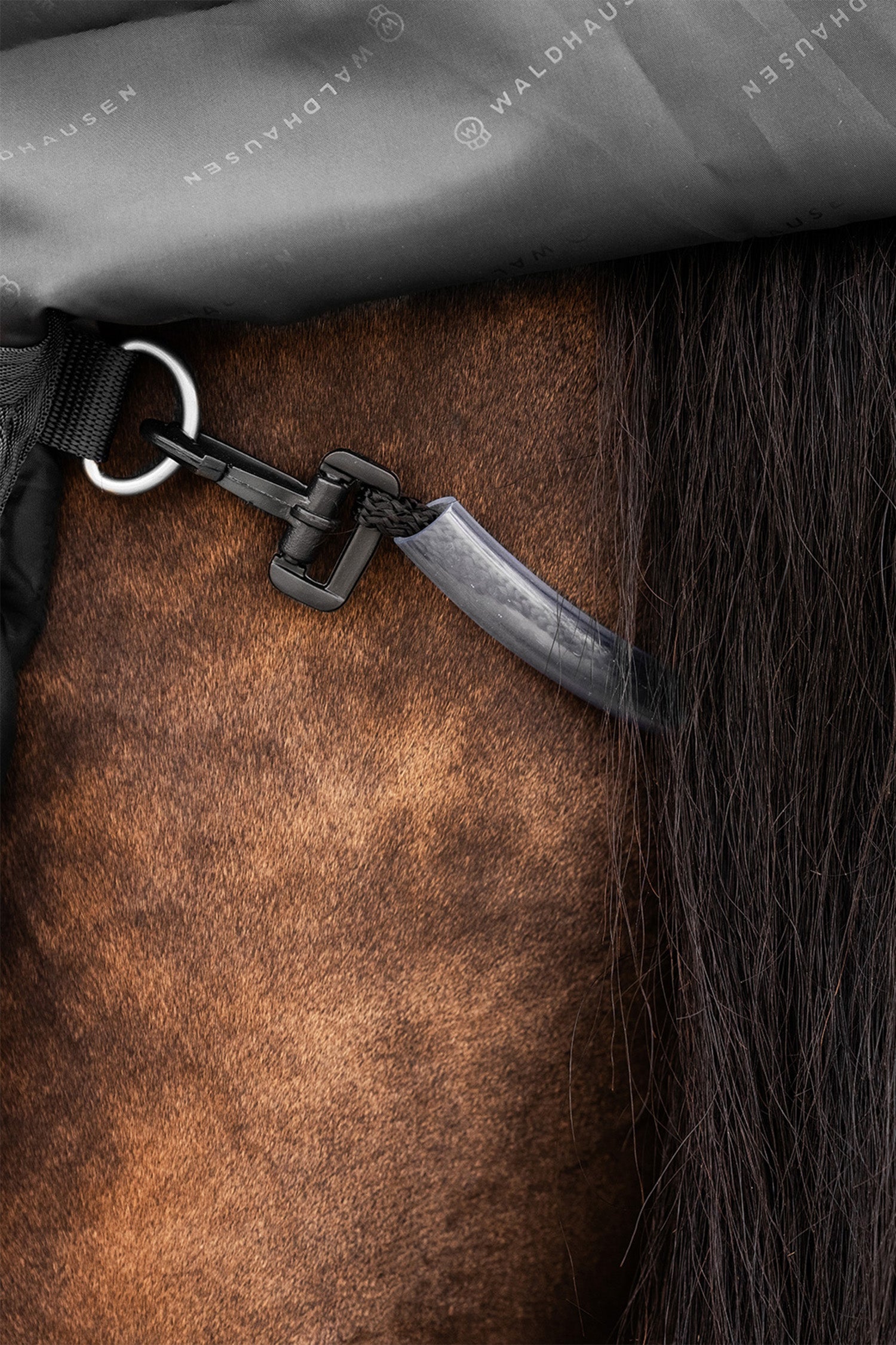 De deken heeft daarnaast reflecterende biezen en een extra grote staartflap met reflecterende print voor betere zichtbaarheid in het donker. Dankzij het Clip-In-systeem kan de deken eenvoudig worden aangevuld met een onderdeken of halsstuk indien nodig.