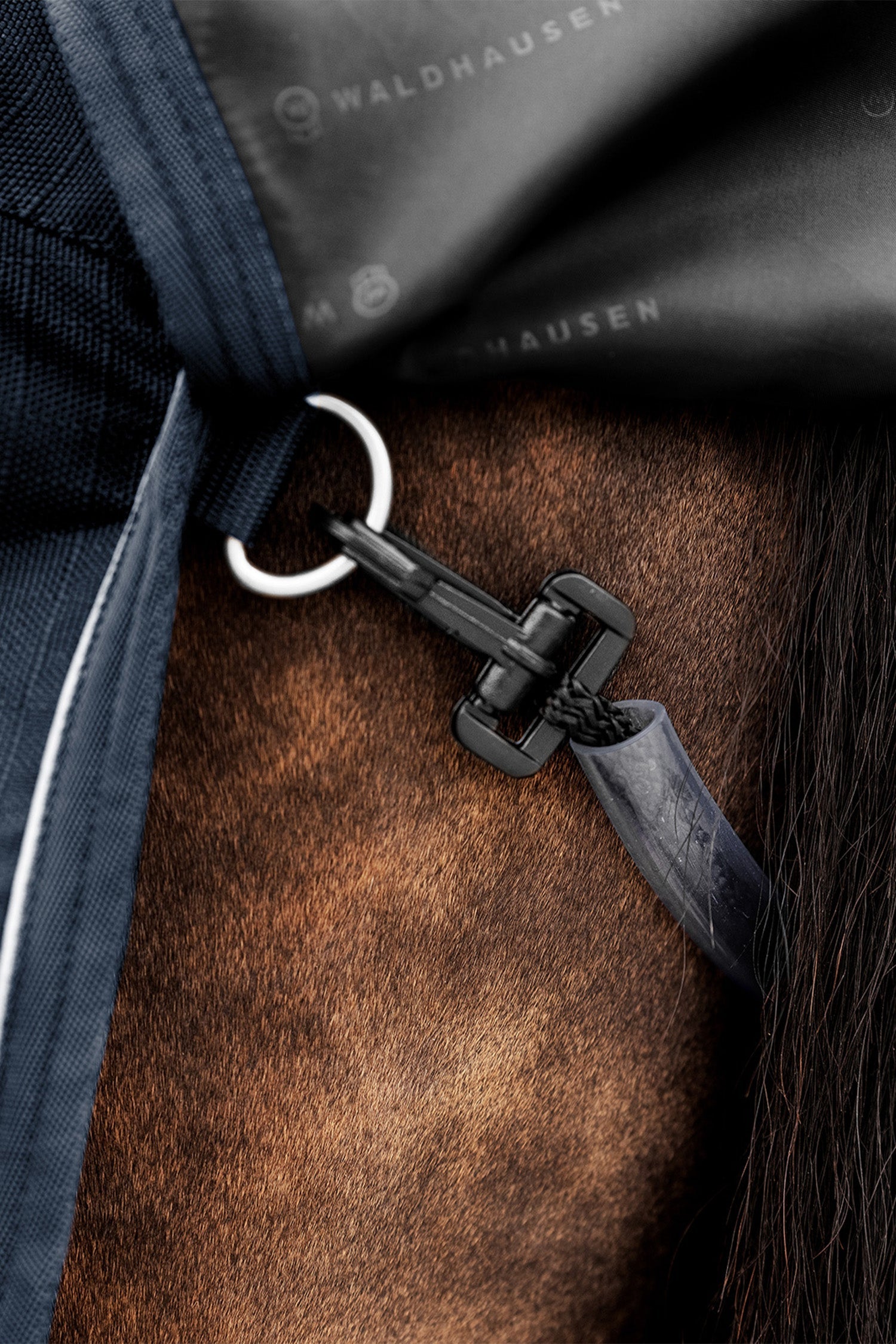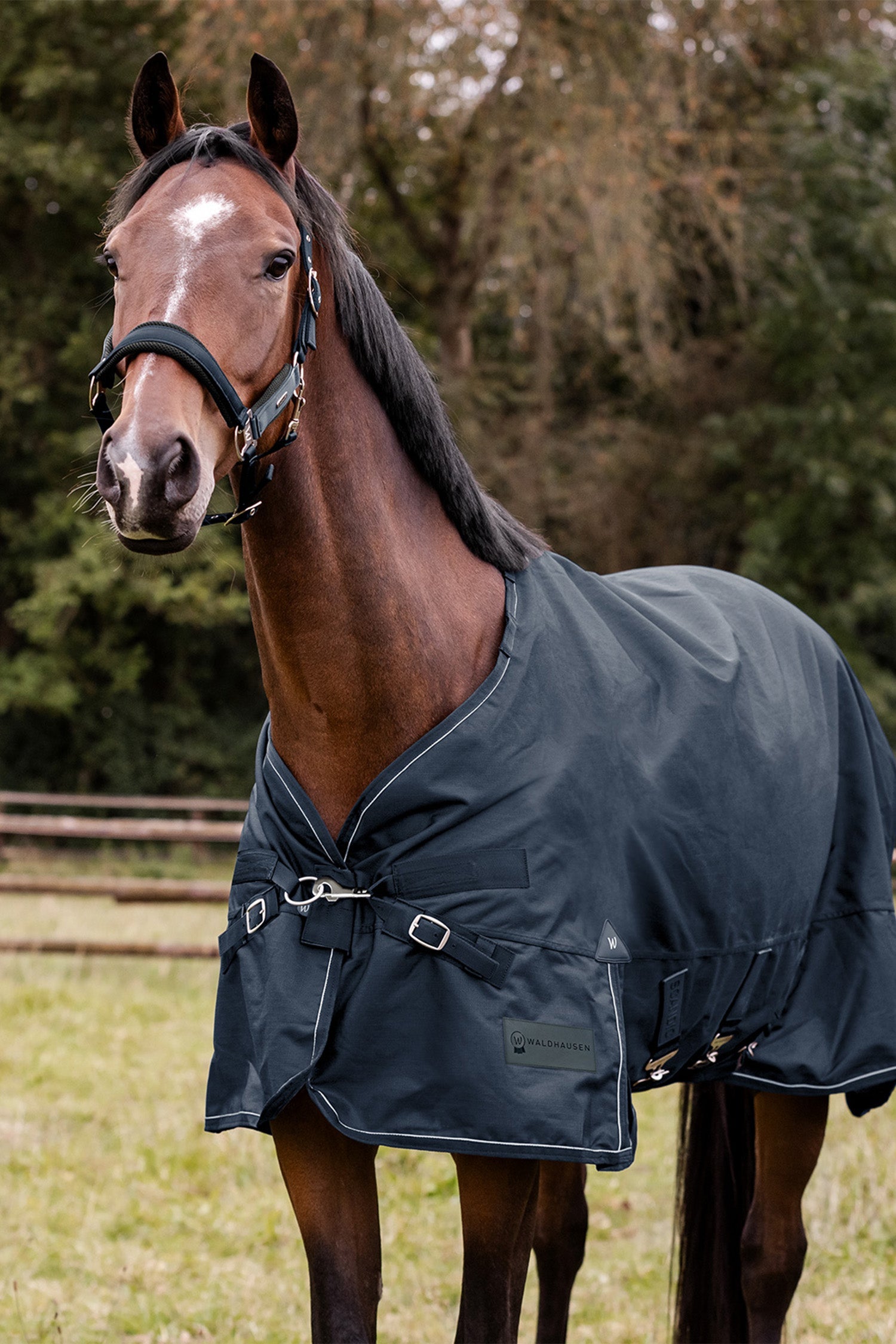 Geef je paard de best mogelijke bescherming op koude dagen met de SCANDIC Buitendeken, 300 g van Waldhausen. De deken combineert comfort, functionaliteit en hoge kwaliteit en is gemaakt van robuust 1200 denier ripstop-materiaal dat zowel waterdicht (3000 mm waterkolom) als ademend is – perfect voor dagelijks gebruik bij elk weertype.