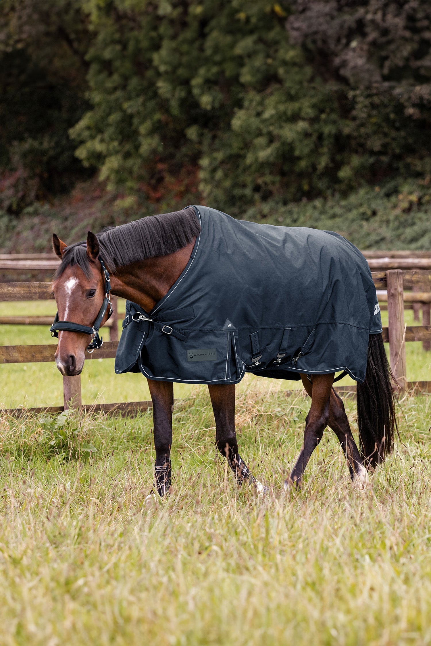 Met 300 g vulling biedt de deken extra warmte wanneer de temperatuur daalt. De antibacteriële voering zorgt voor een fris en aangenaam gevoel, terwijl schuimvullingen bij de schoft druk verlichten en het comfort verhogen. De slimme V-voorsluiting met extra klittenband en het extra grote kick pleat-ontwerp zorgen voor een stabiele pasvorm en optimale bewegingsvrijheid.