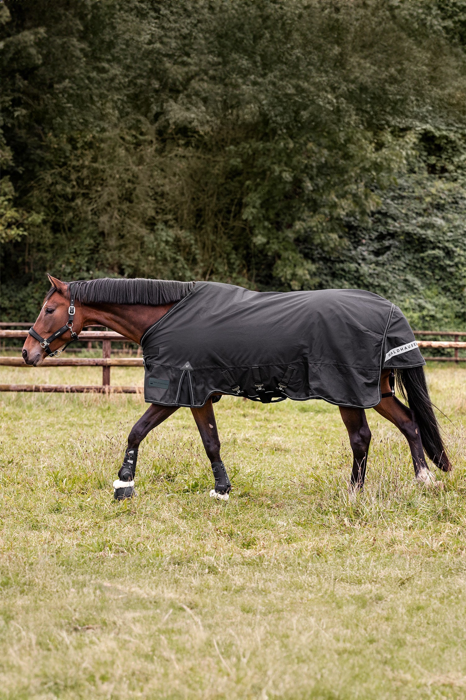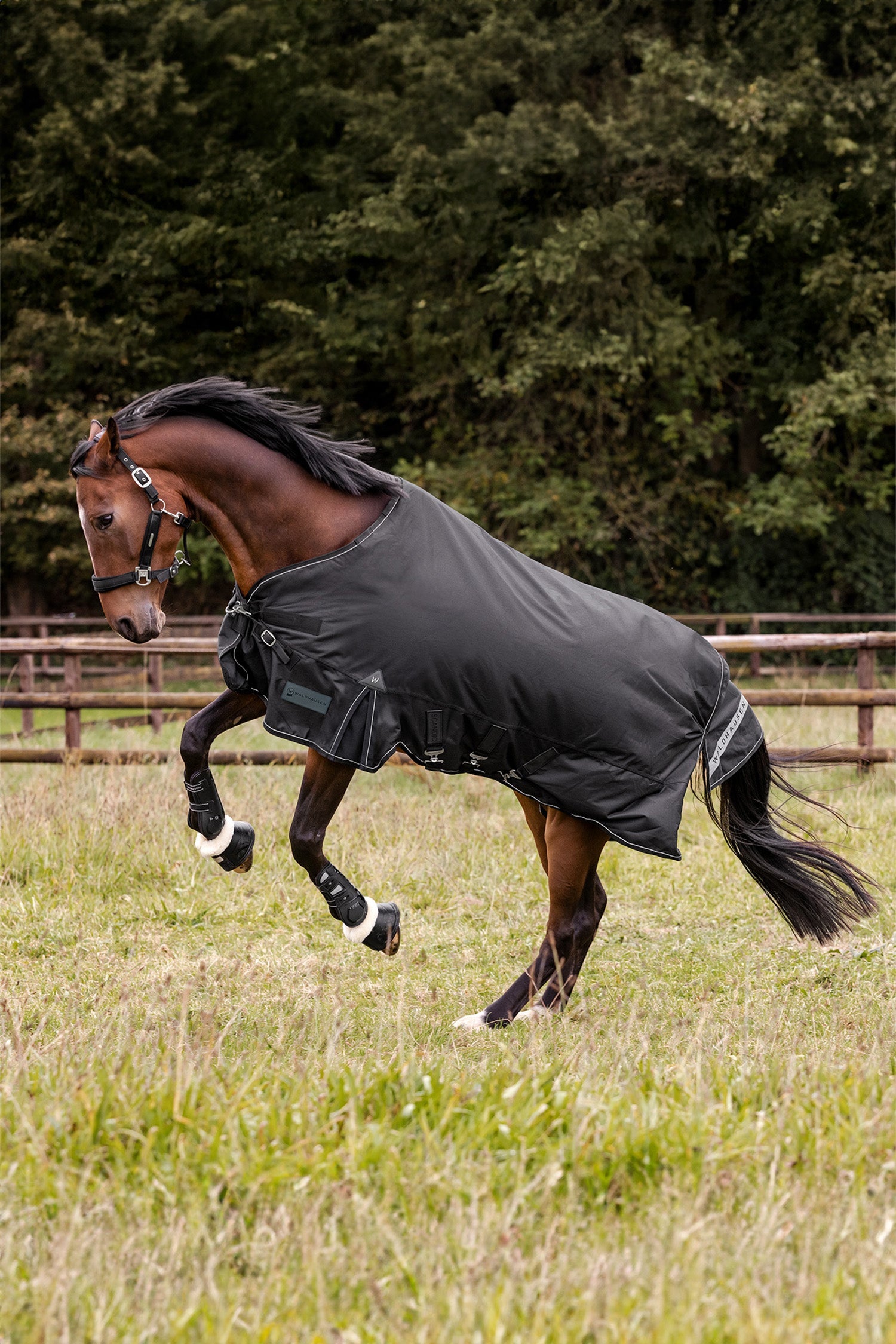 Met 300 g vulling biedt de deken extra warmte wanneer de temperatuur daalt. De antibacteriële voering zorgt voor een fris en comfortabel gevoel, terwijl schuimvullingen bij de schoft druk verlichten en het comfort verhogen. De slimme V-voorsluiting met extra klittenband en het extra grote kick pleat-design zorgen voor een stabiele pasvorm en optimale bewegingsvrijheid.