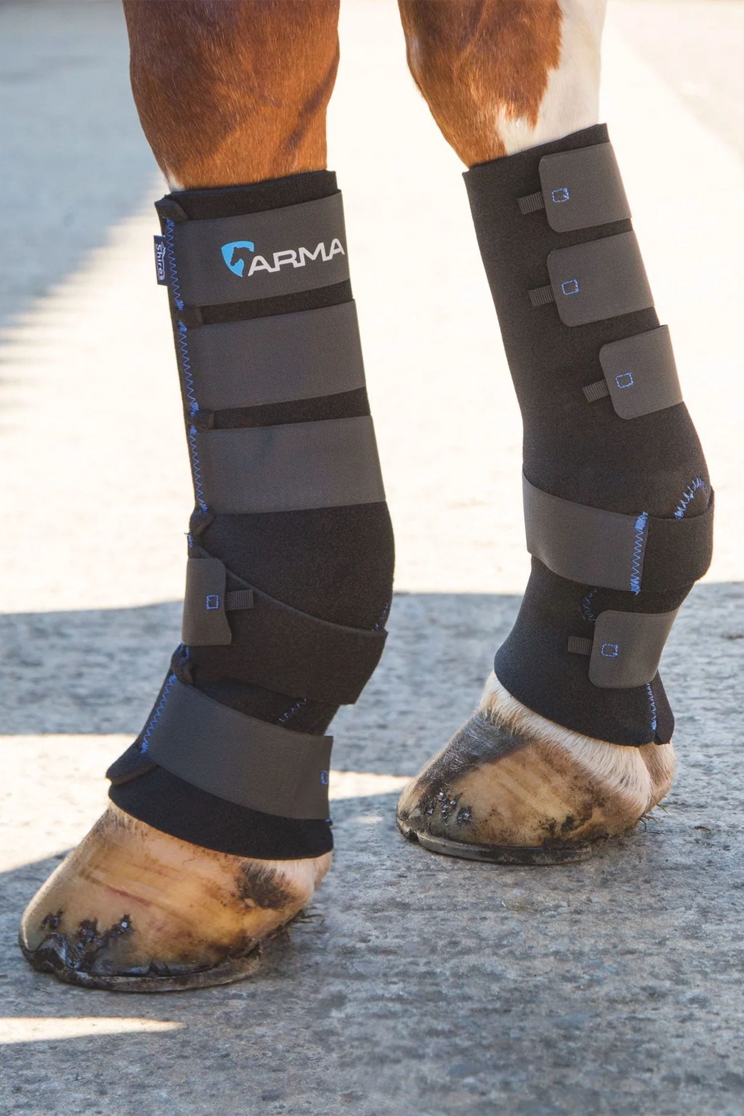 Ochraniacze przeciwbłotne ARMA deluxe mają ergonomiczną konstrukcję zapewniającą ścisłe i wygodne dopasowanie, co gwarantuje maksymalną ochronę przed grzybicą błotną. Gęsta neoprenowa warstwa chroni przed uderzeniami i otarciami oraz posiada perforacje umożliwiające przepływ powietrza, które pomagają wentylować nogę i zapobiegać przegrzaniu. Bezpieczne zapięcia na rzep. Odpowiednie na przednie lub tylne nogi. Zestaw 2 szt.