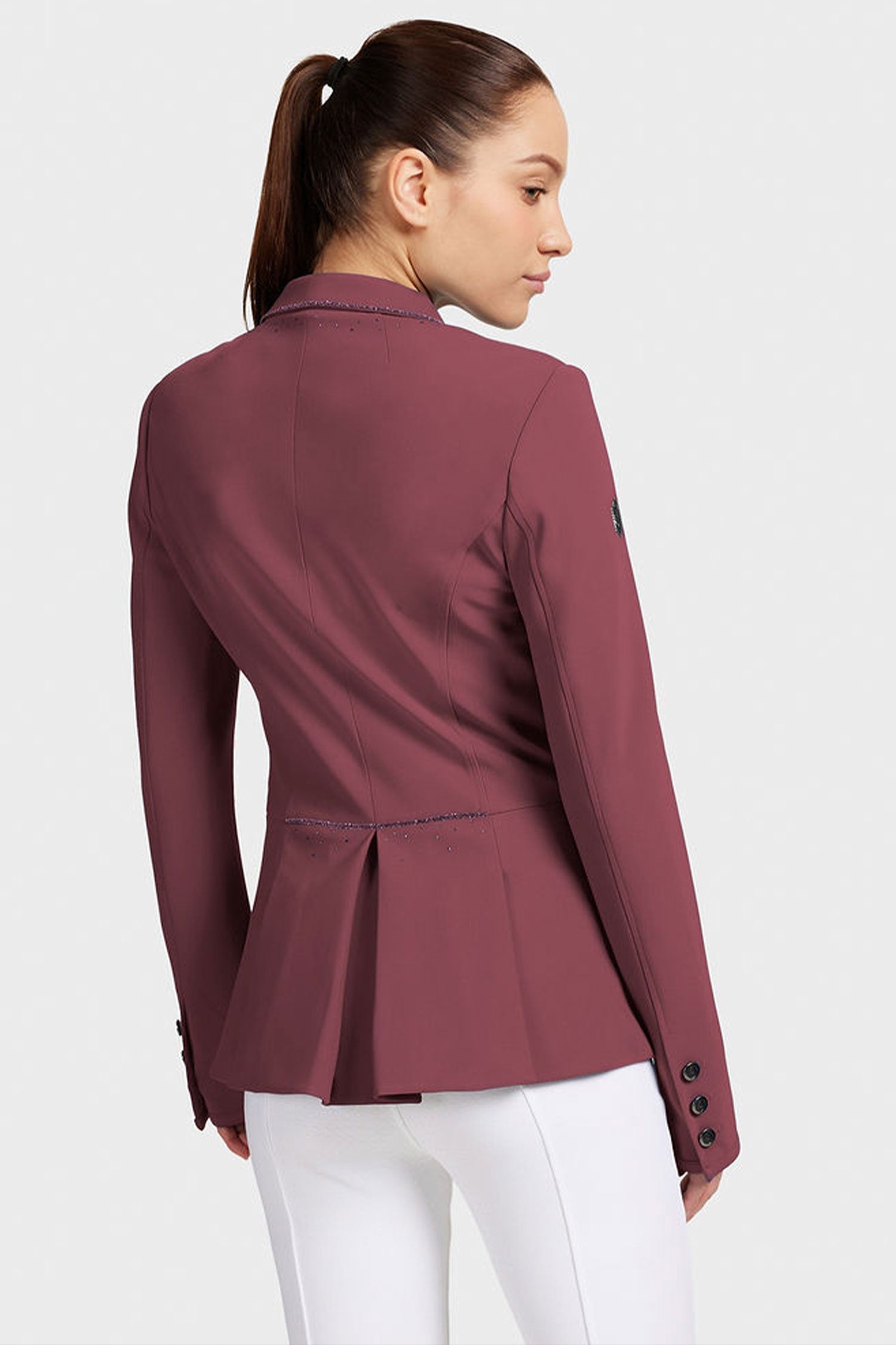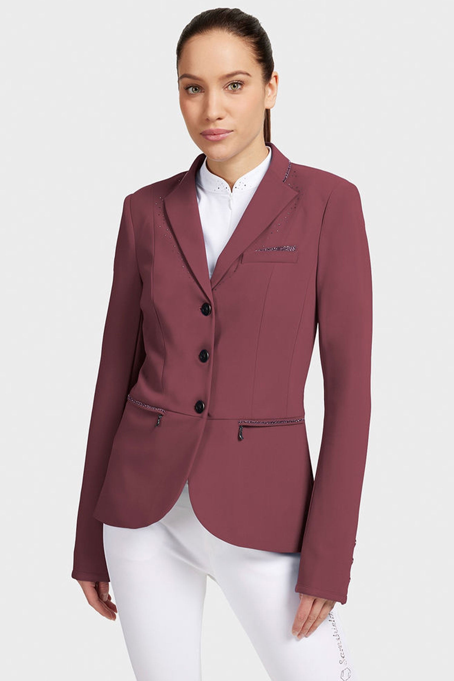 Bestsellerowa Victorine w nowym, stylowym wzornictwie z paskiem z tkaniny kryształowej na kołnierzu i w okolicy lędźwiowej, pasującym do kasków jeździeckich Samshield.