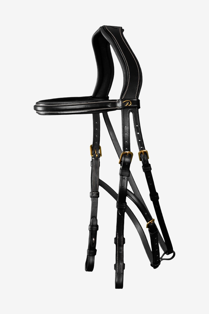 Ogłowie Dyon do hackamore wykonane z najwyższej jakości skóry, która jest miękka i elastyczna. Ogłowie jest wąskie, z miękkim nachrapnikiem i mocowaniami do nachrapnika oraz pasków policzkowych.
