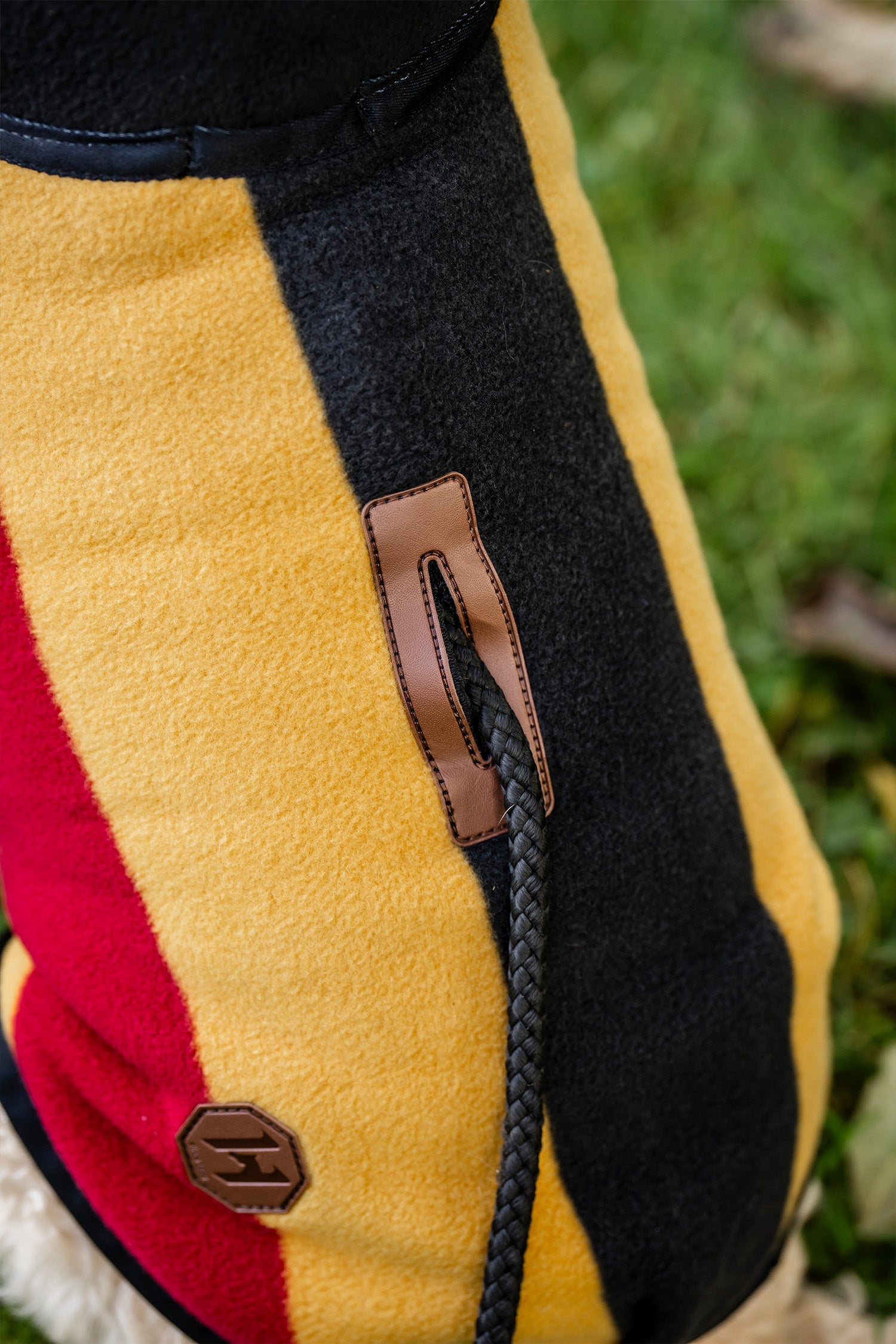 Horseware Newmarket polar dla psa w kolorze Witney Gold to miękki i ciepły derka dla psa w klasycznym stylu. Wykonany z wysokiej jakości polaru, który utrzymuje psa w cieple i komforcie w chłodne dni, a jednocześnie jest lekki i wygodny w noszeniu.