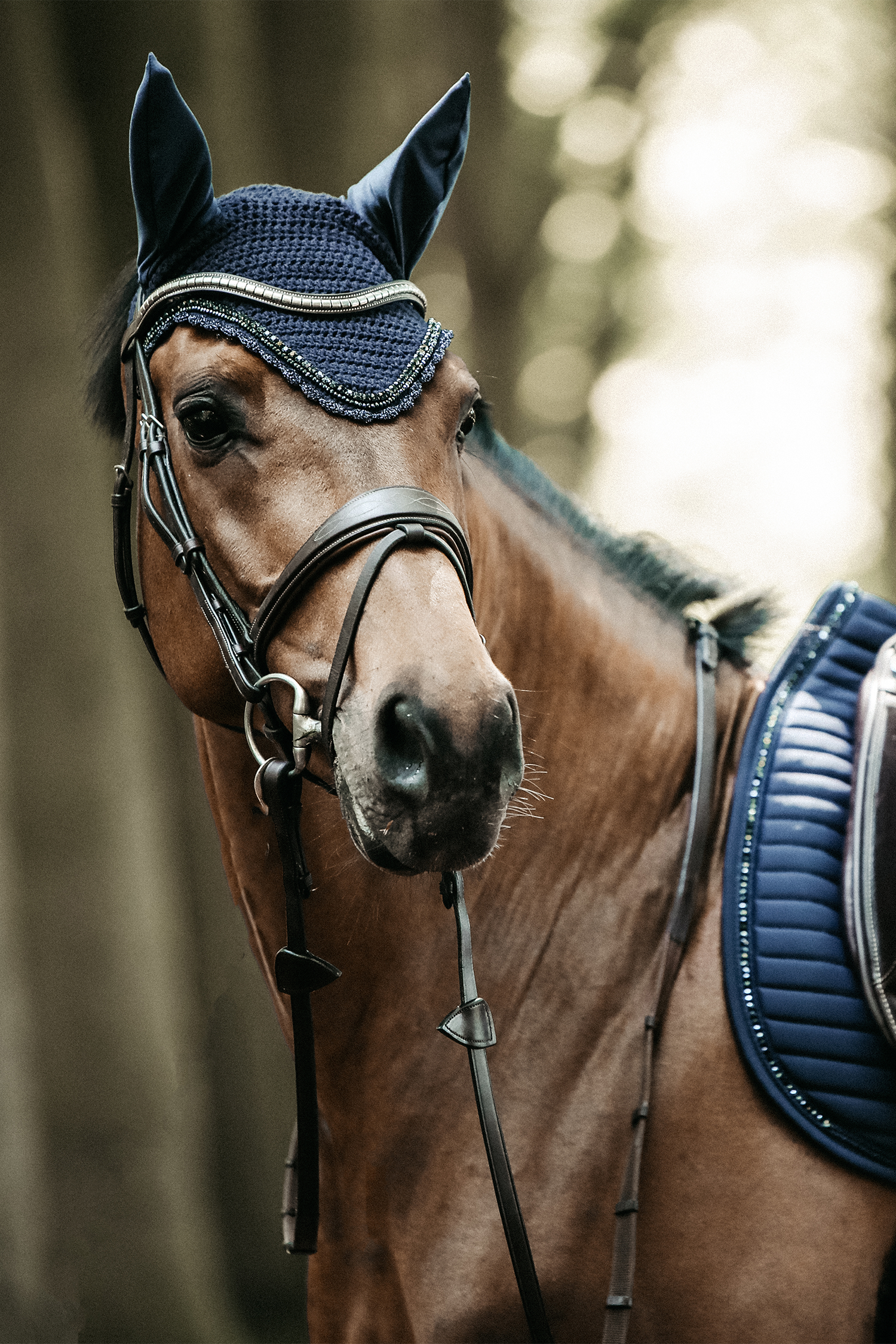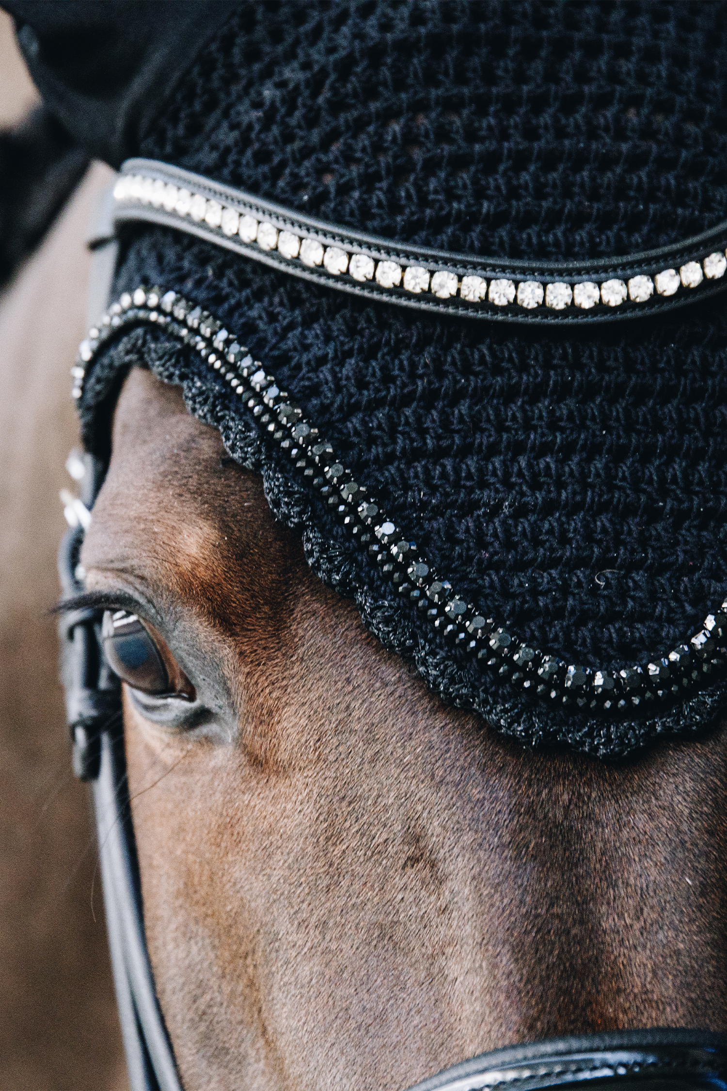 - Ochrona przed uciążliwymi owadami przy uszach konia.