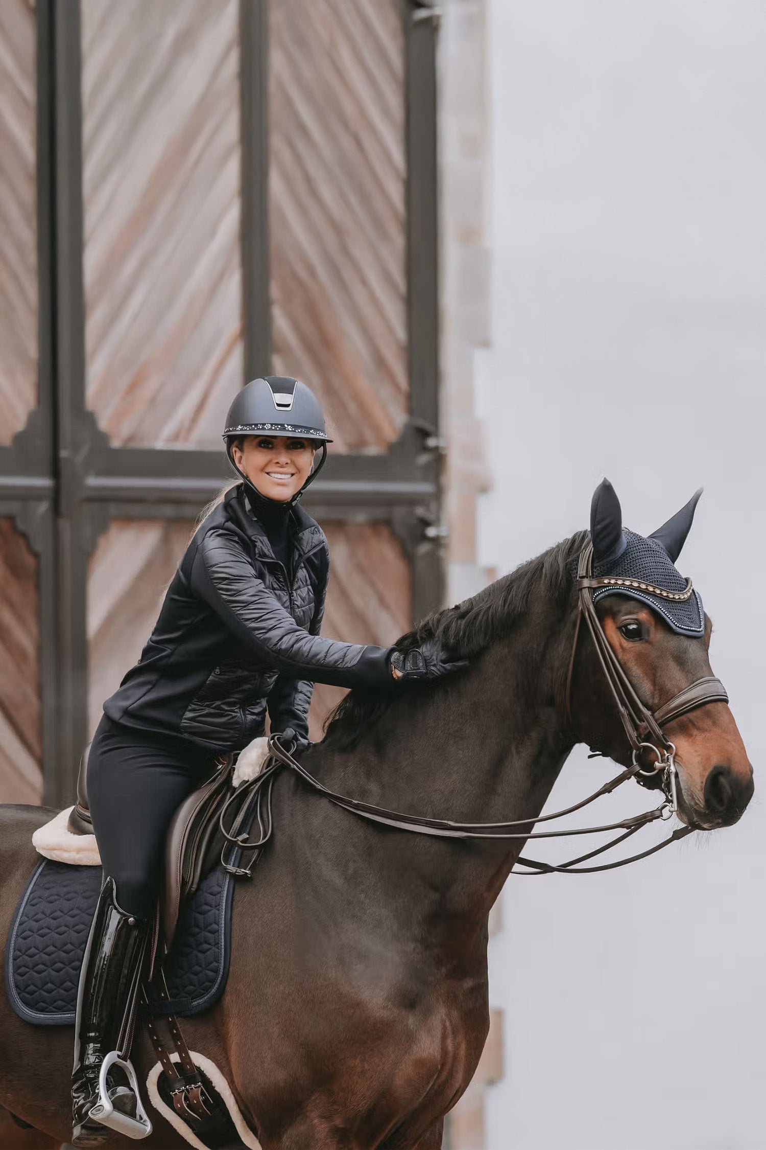 Ozdobiony piękną, błyszczącą taśmą, która idealnie się mieni. Cały czaprak wykonany jest z oddychającego materiału, który utrzymuje Twojego konia suchym podczas jazdy.