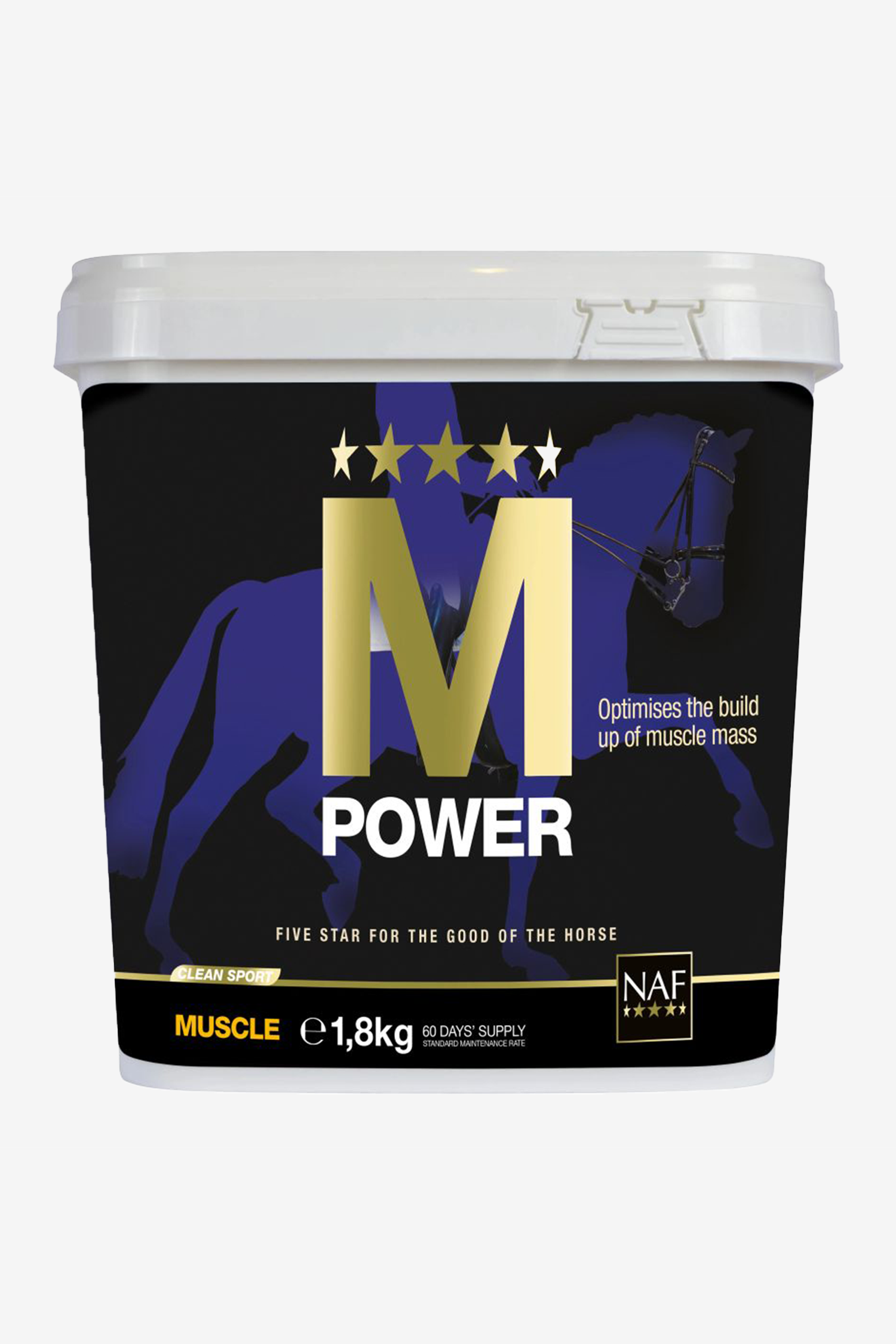 NAF M Power to wysokiej jakości i bezkarencyjny dodatek paszowy dla koni, opracowany w celu wspierania rozwoju mięśni, siły i wytrzymałości. Produkt został stworzony, aby pomóc koniowi w naturalny sposób budować i utrzymywać masę mięśniową jako część codziennej diety.