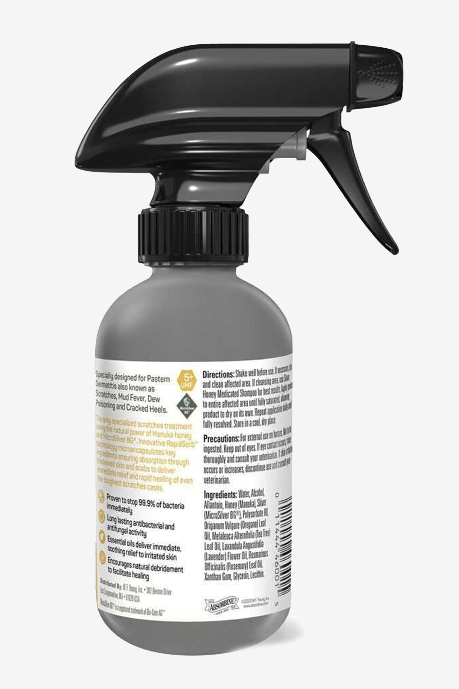 Pomóż swojemu koniowi zachować zdrową skórę nawet w trudnych warunkach pogodowych dzięki Silver Honey® Mud Defense Spray. Ta silna formuła została specjalnie opracowana z myślą o problemach, które często pojawiają się wokół pęcin i piętek w mokrym i błotnistym środowisku. Dzięki innowacyjnej technologii RapidSorb™ spray przenika przez zgrubiałą skórę i strupy, zapewniając szybkie wchłanianie miodu Manuka i MicroSilver BG® – dwóch z najskuteczniejszych naturalnych składników do pielęgnacji skóry.