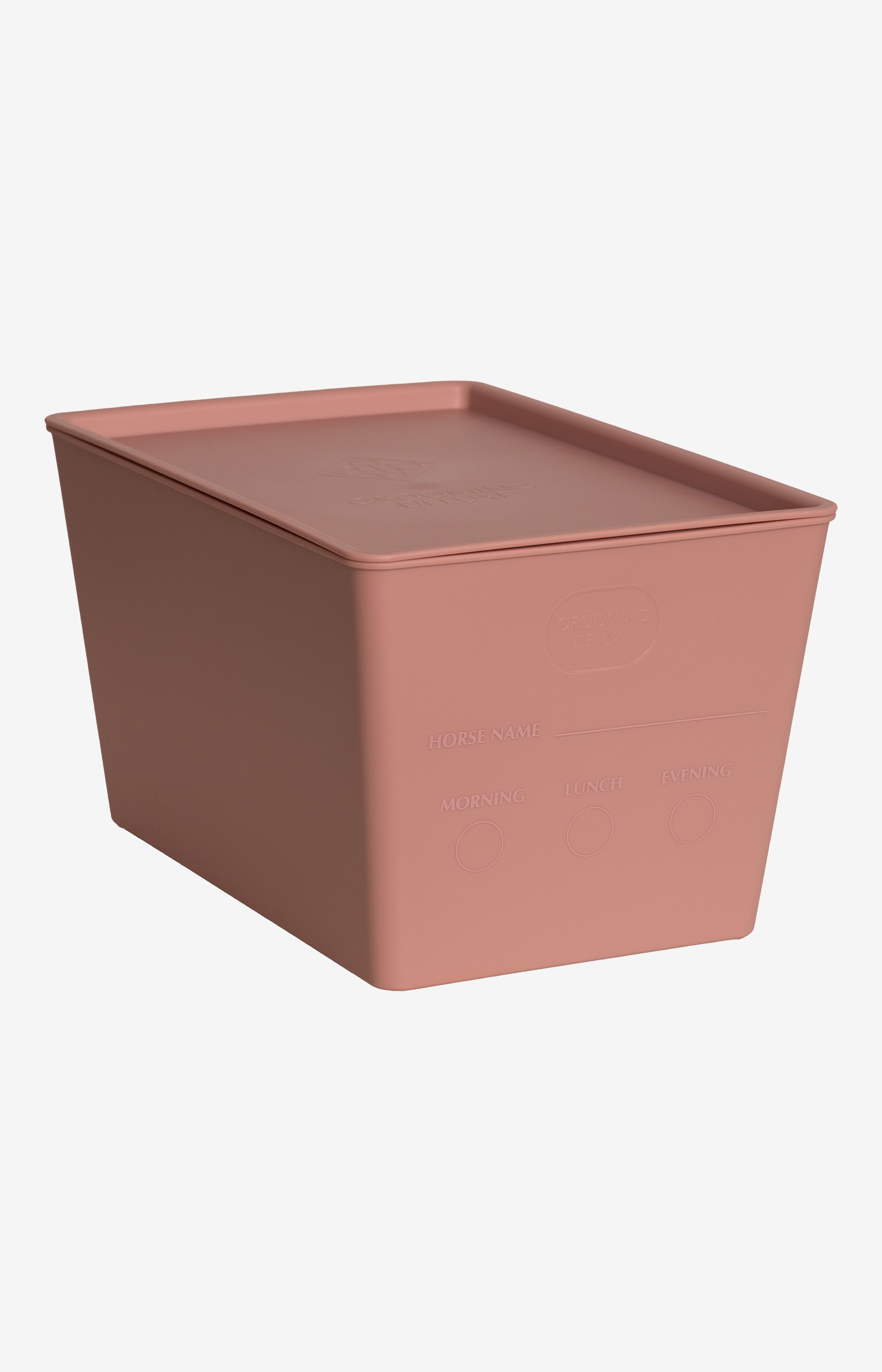 Grooming Deluxe Pojemnik na paszę z pokrywką to praktyczne i higieniczne rozwiązanie do przygotowywania, przechowywania i podawania paszy dla konia – zarówno w stajni, jak i na zawodach.