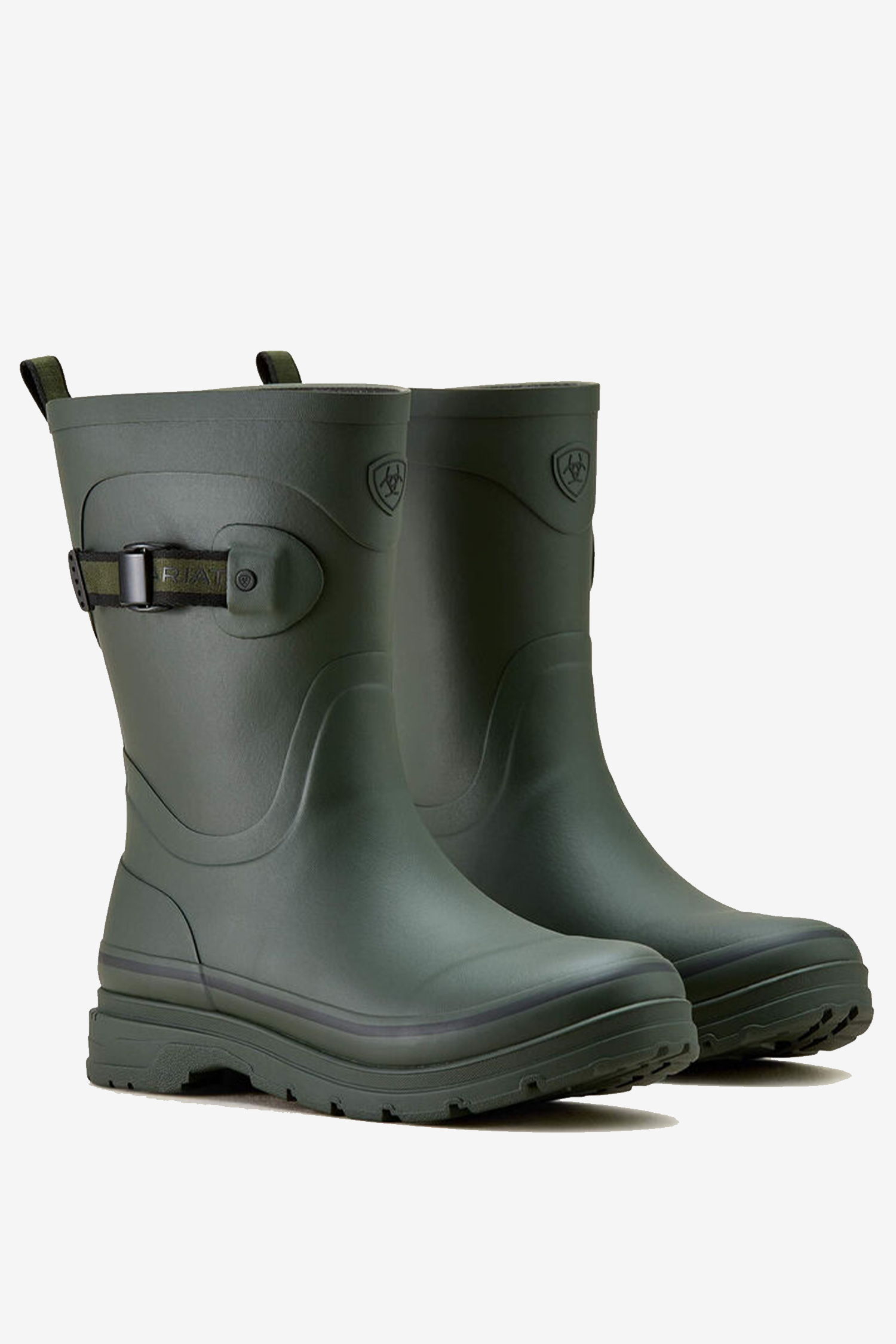 Ariat Kelmarsh Mid Kalosze Gumowe Dark Olive to wodoodporne kalosze gumowe o średniej wysokości, idealne do stajni, gospodarstwa i aktywności na świeżym powietrzu, gdzie potrzebujesz suchych stóp i stabilnego chwytu. Średnia wysokość cholewki zapewnia dobrą ochronę przed błotem i wilgocią, a jednocześnie buty są wygodne do codziennego użytku – to doskonały wybór dla osób szukających praktycznych kaloszy gumowych na cały rok.