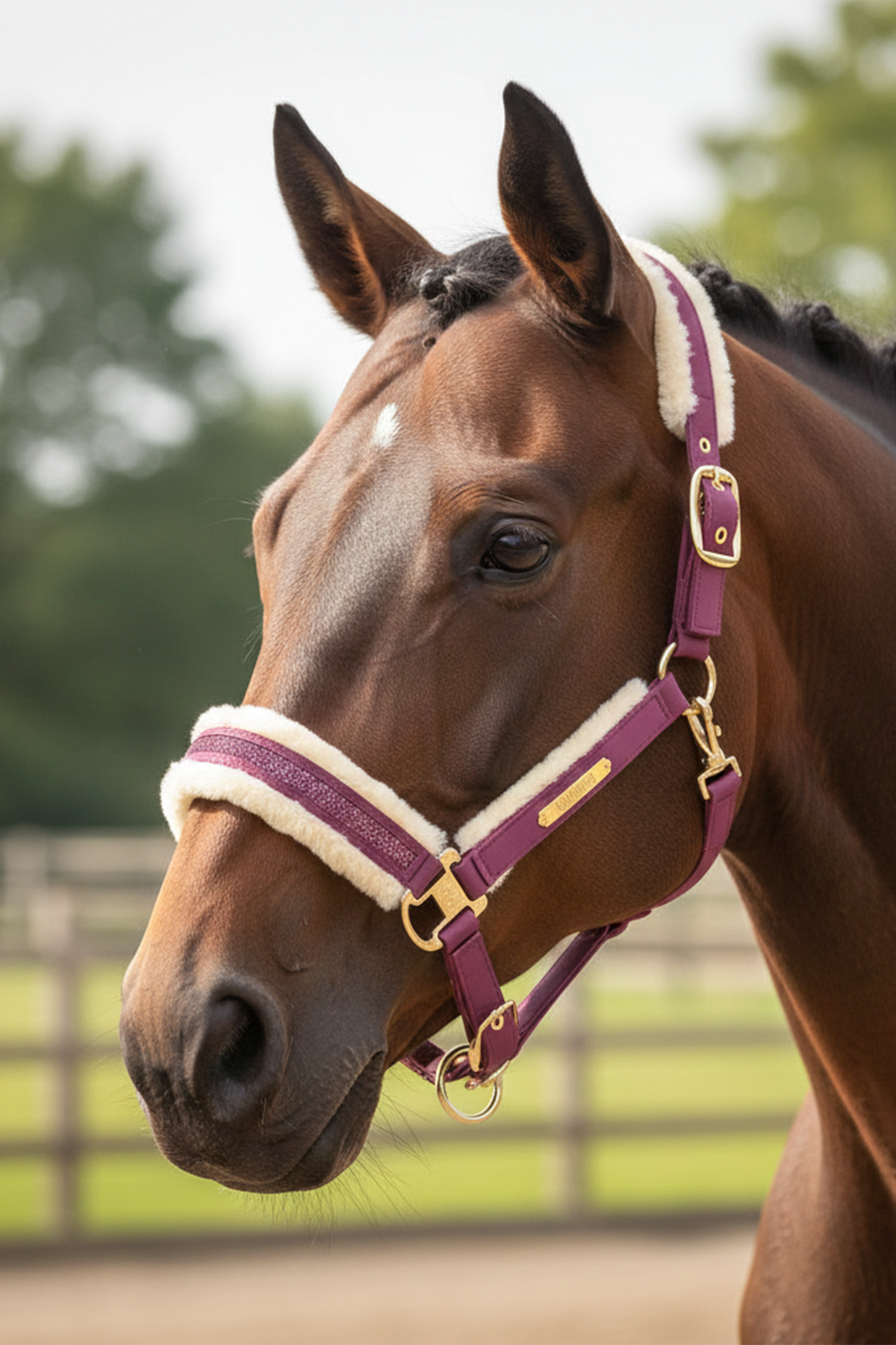Naprawdę luksusowy kantar dla tych, którzy chcą, aby koń był zarówno wygodny, jak i niezwykle stylowy. Faux Leather Jewel FF z kolekcji Heritage 25 występuje w głębokim, eleganckim kolorze wildberry i szybko staje się ulubieńcem zarówno na co dzień, jak i na zawody.