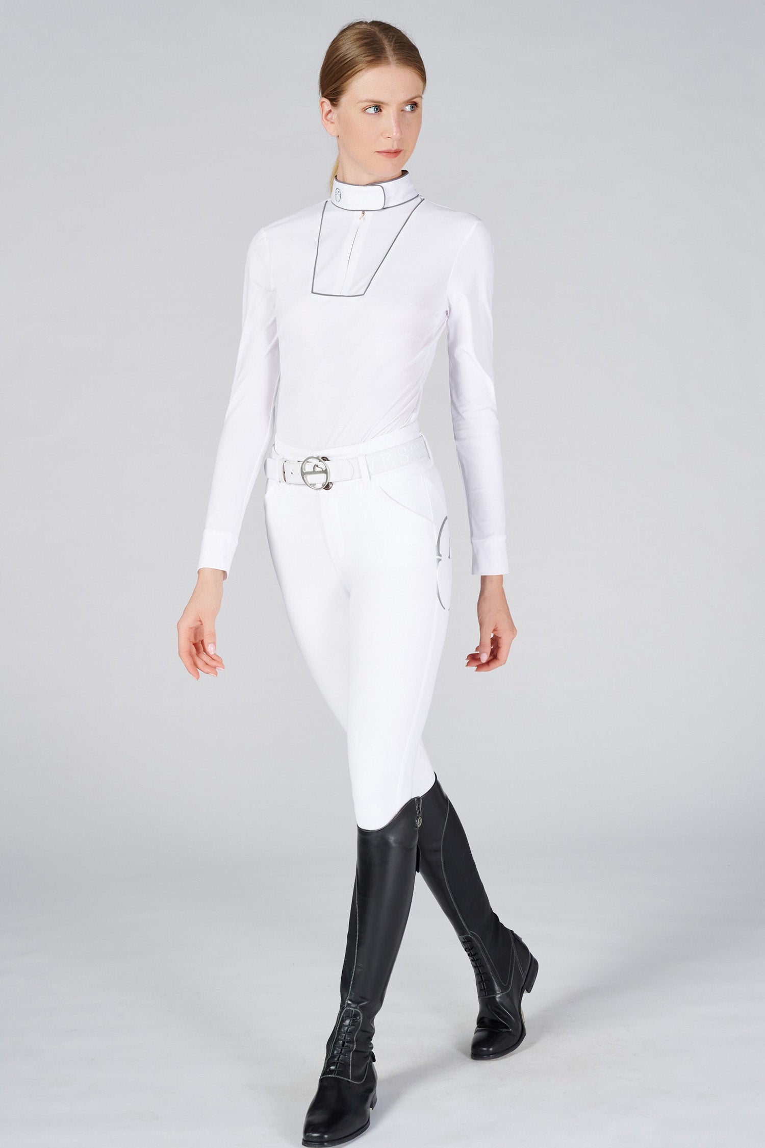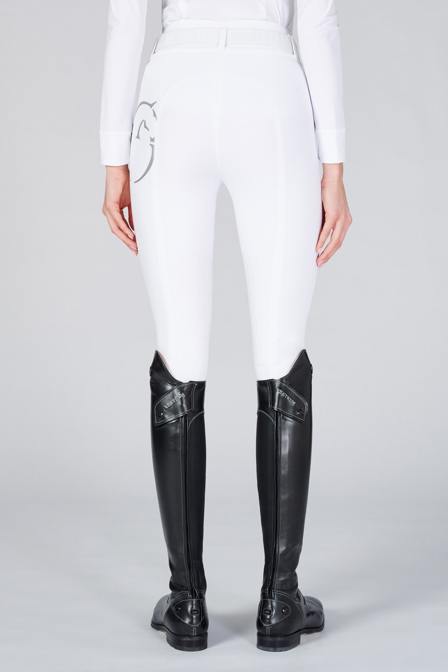 Elastyczne i dopasowujące się, bez utraty wsparcia. Trzy guziki w pasie zapewniają dobrą stabilność i dobrze przylegają w okolicy lędźwiowej. Logo po boku lewego uda. Silikonowy lej po wewnętrznej stronie uda. Elastyczne zakończenie nogawek.