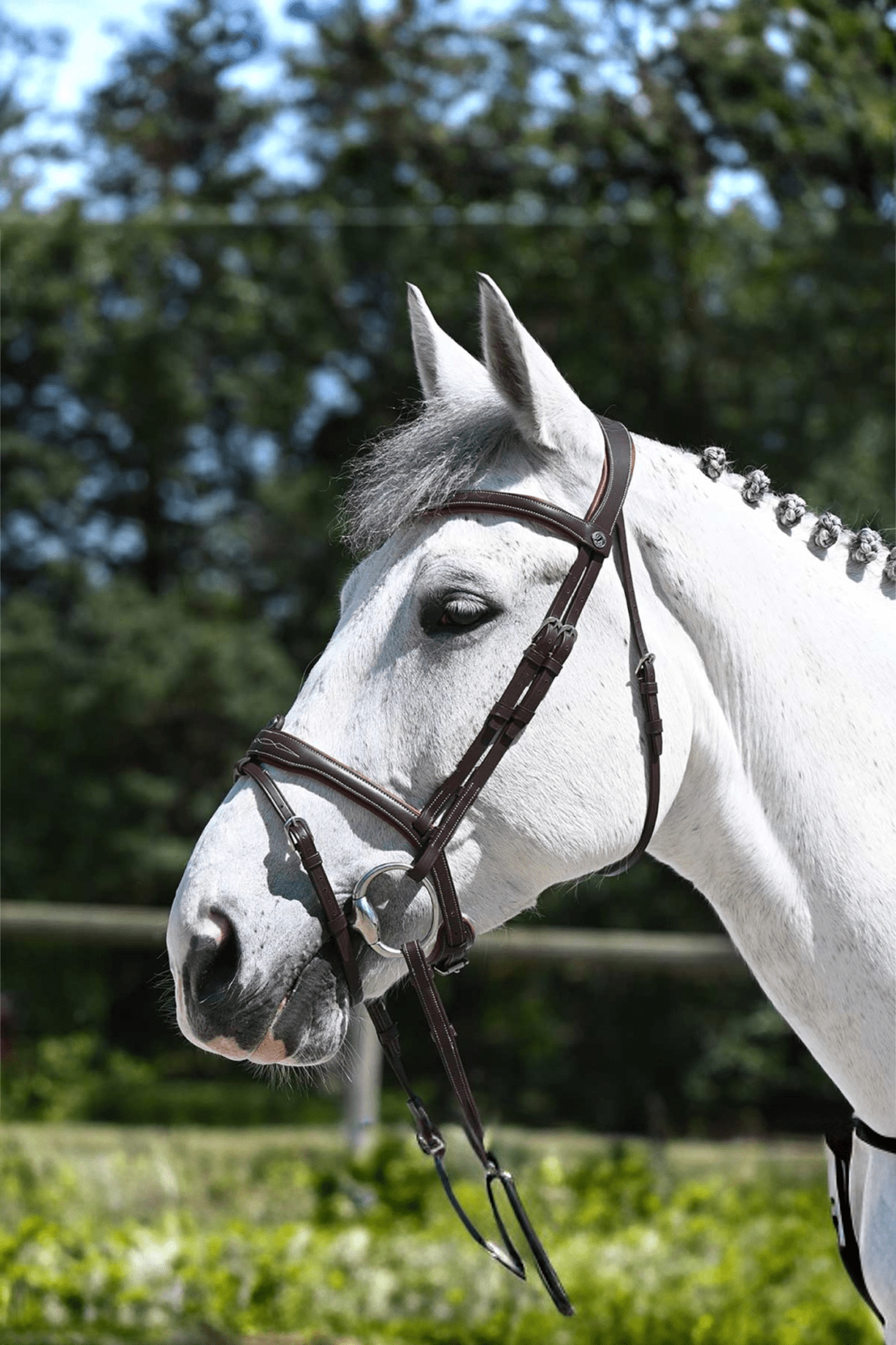 Trense med Aachennæsebånd fra Signature by Antarès. En trense med polstret nakkestykke og næsebånd. Broderi på pandebånd og næsebånd giver trensen et klassisk, elegant udseende. Spænder i rustfrit stål.