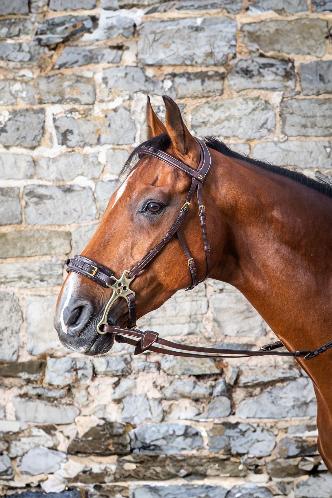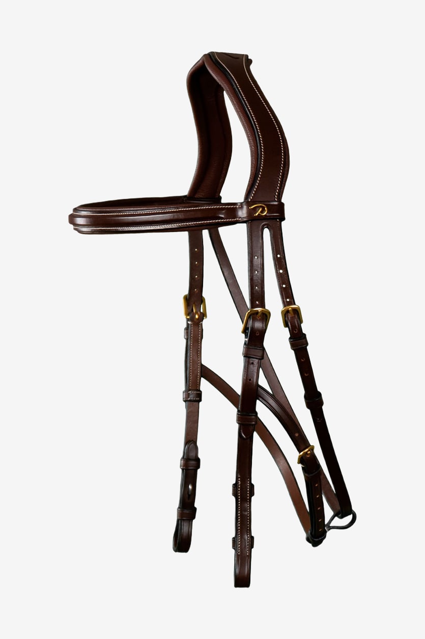 Dyon trense til hackamore i det fineste læder, som er blødt og smidigt. Trensen er smal med et blødt nakkestykke og fæster til næsebånd og sidestykker.