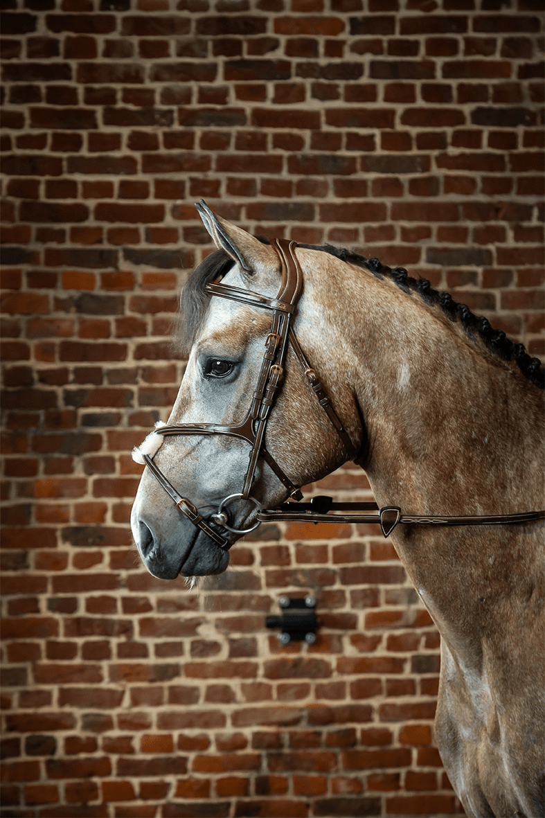 Giv din hest elegant og funktionelt udstyr med Figure 8 Næserem Trense fra den eksklusive Dyón Collection. Denne trense er fremstillet i blødt og slidstærkt europæisk læder, kendt for sin førsteklasses kvalitet og luksuriøse fornemmelse.