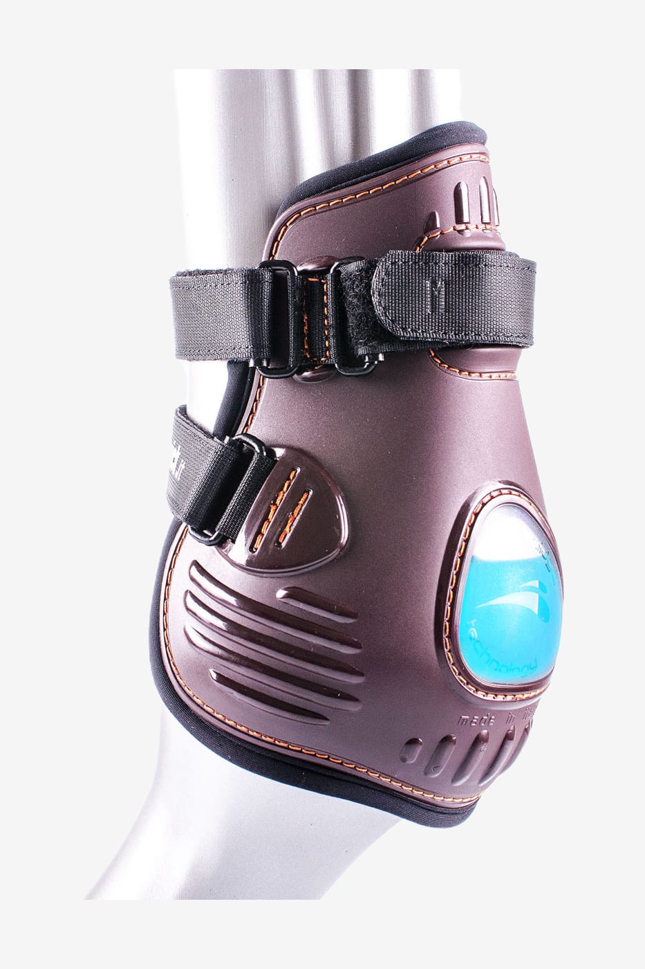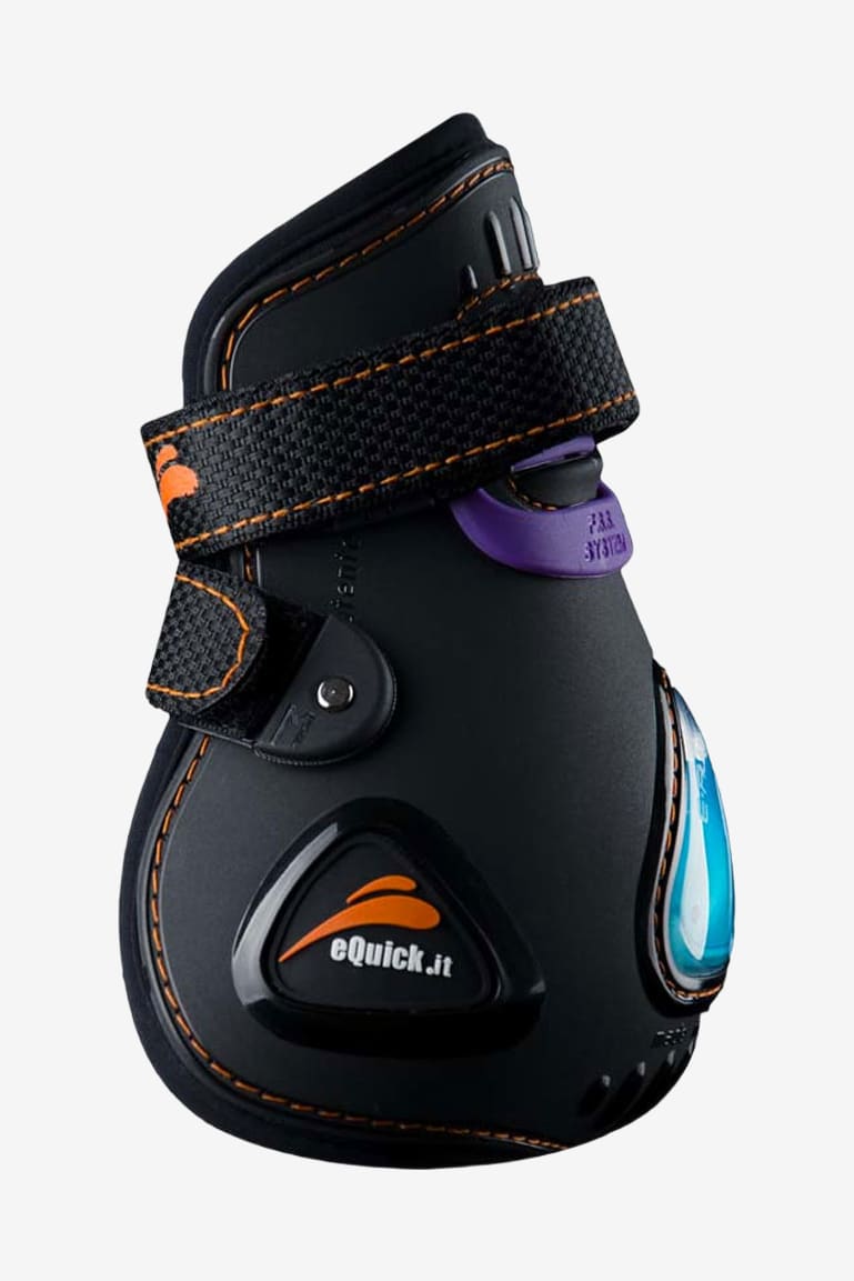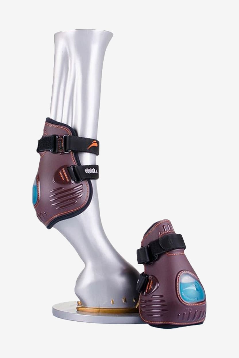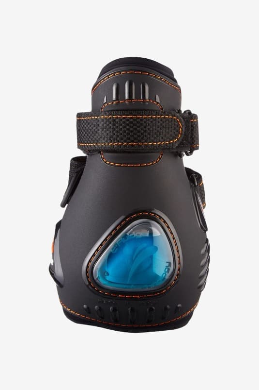 En innovativ bagbensgamacher til brug kun af rutinerede ryttere. Anatomisk formet for at beskytte senen og kodeleddet mod traumer. Indersiden af neopren og ydersiden af plast gør, at gamacherne er lette at vaske og holde rene. Gamacherne er udviklet til at hjælpe hesten med bagbensteknikken. Eksklusiv eFluidgel teknologi reducerer kraftigt trykket/slaget mod hestens ben takket være luft og gel, der absorberer stødet ved et slag.