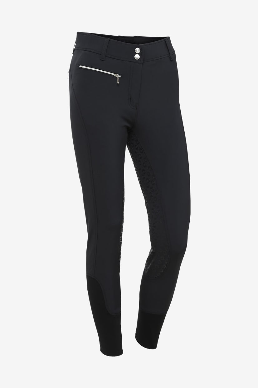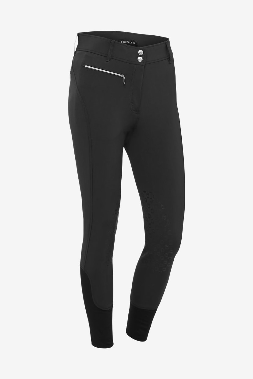 Ridebukser fra Equipage i dejligt materiale. Normal talje med bredere linning samt dobbeltknaplukning. Helskåret med detaljeret silikonegreb og elastiske benafslutninger.