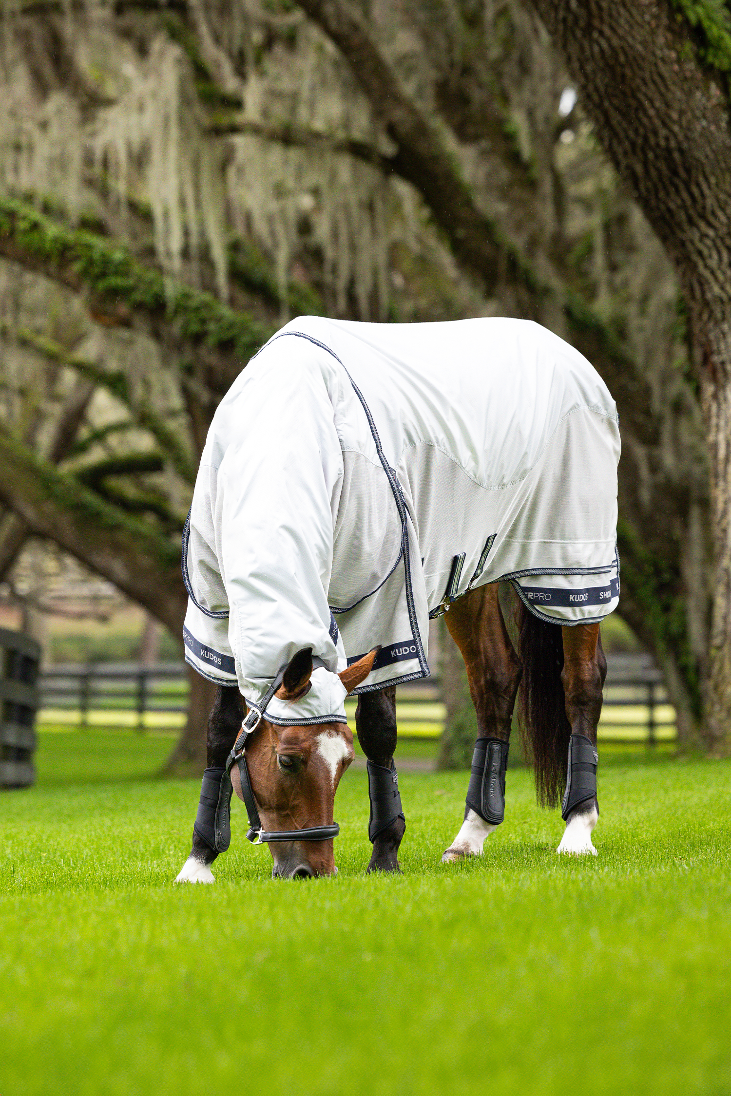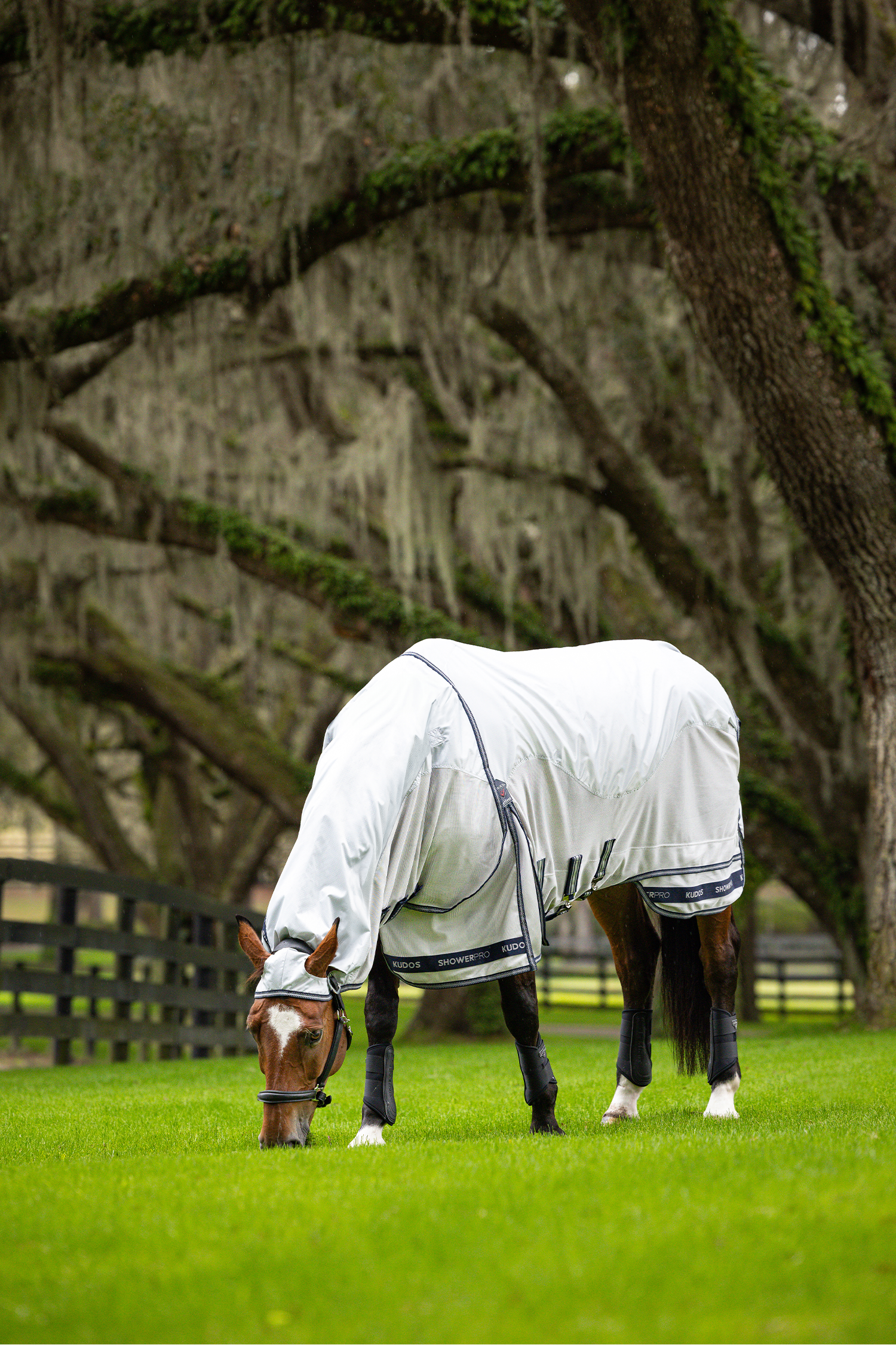 LeMieux Kudos Shower Pro Waterproof Fluedækken Grå er perfekt til heste, der går meget ude på fold om sommeren og efteråret, især følsomme heste, der har brug for ekstra beskyttelse mod både vejr og insekter. Dækkenet er ideelt i omskifteligt vejr, hvor almindelige fluedækkener ikke er tilstrækkelige, men et fuldt regndækken bliver for varmt.