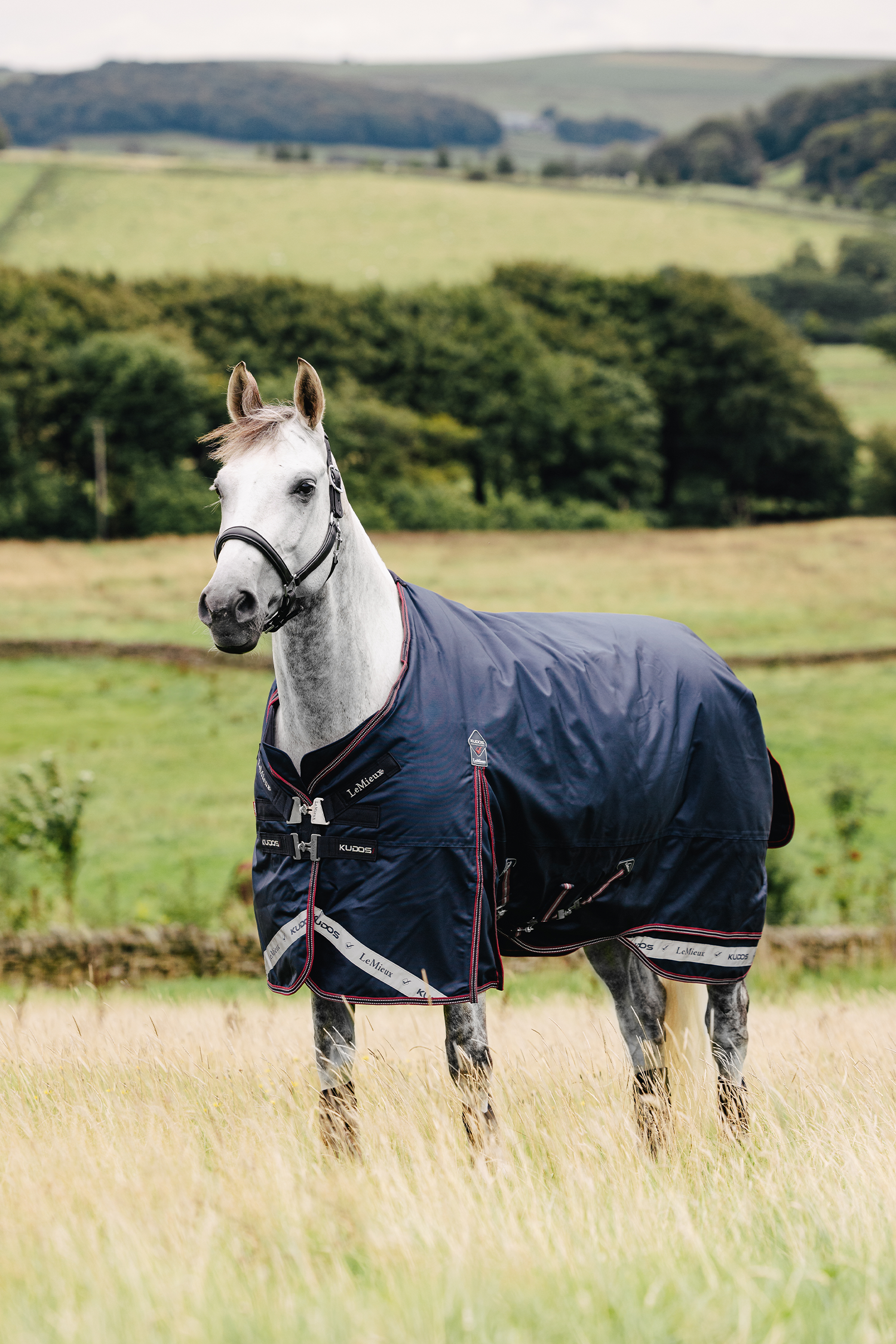 LeMieux Regndækken Kudos 50g Navy er et let og slidstærkt regndækken til hest, designet til overgangsperioder, køligere regnvejrsdage og mildt vintervejr. Dækkenet giver pålidelig beskyttelse mod regn og vind, mens den lette fyldning sikrer, at hesten holder en behagelig temperatur uden at blive for varm.