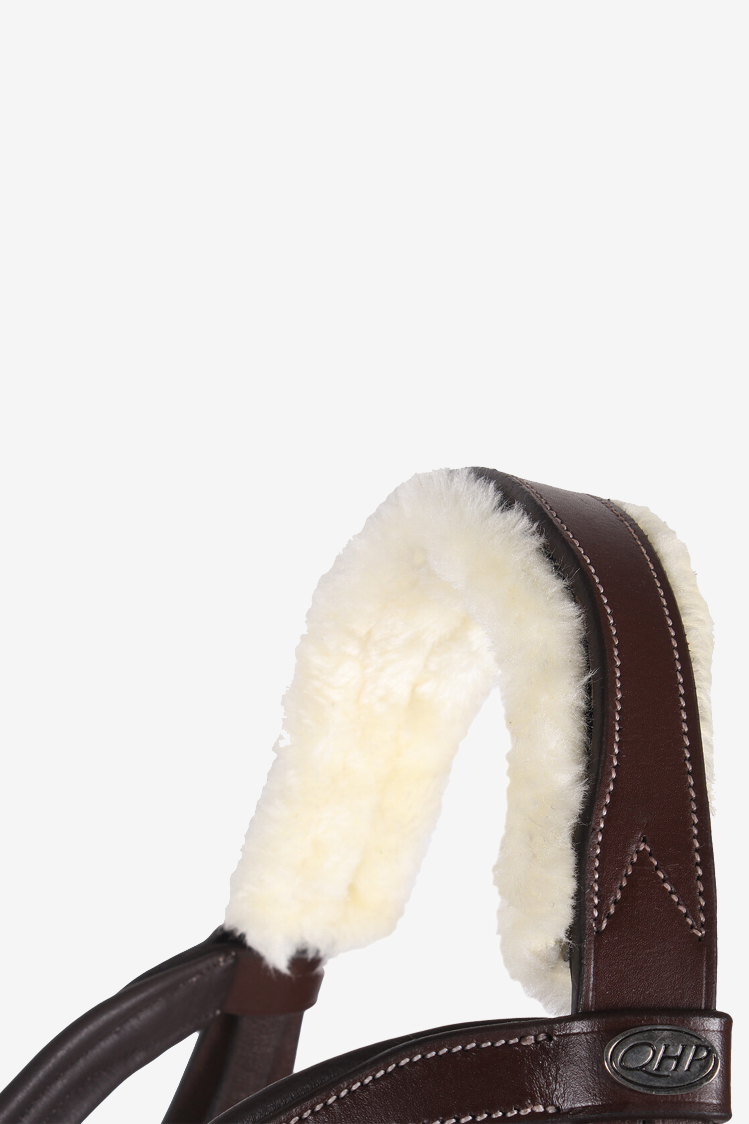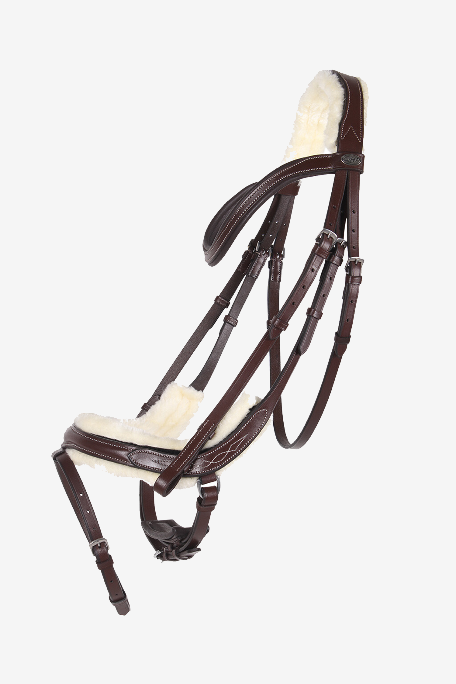 Den bølgeformede pandebånd, foret med kalveskind, fuldender det elegante look. Leveres komplet med matchende tøjler og kan kombineres med øvrige produkter i Ontario-serien for et stilrent helhedsindtryk.