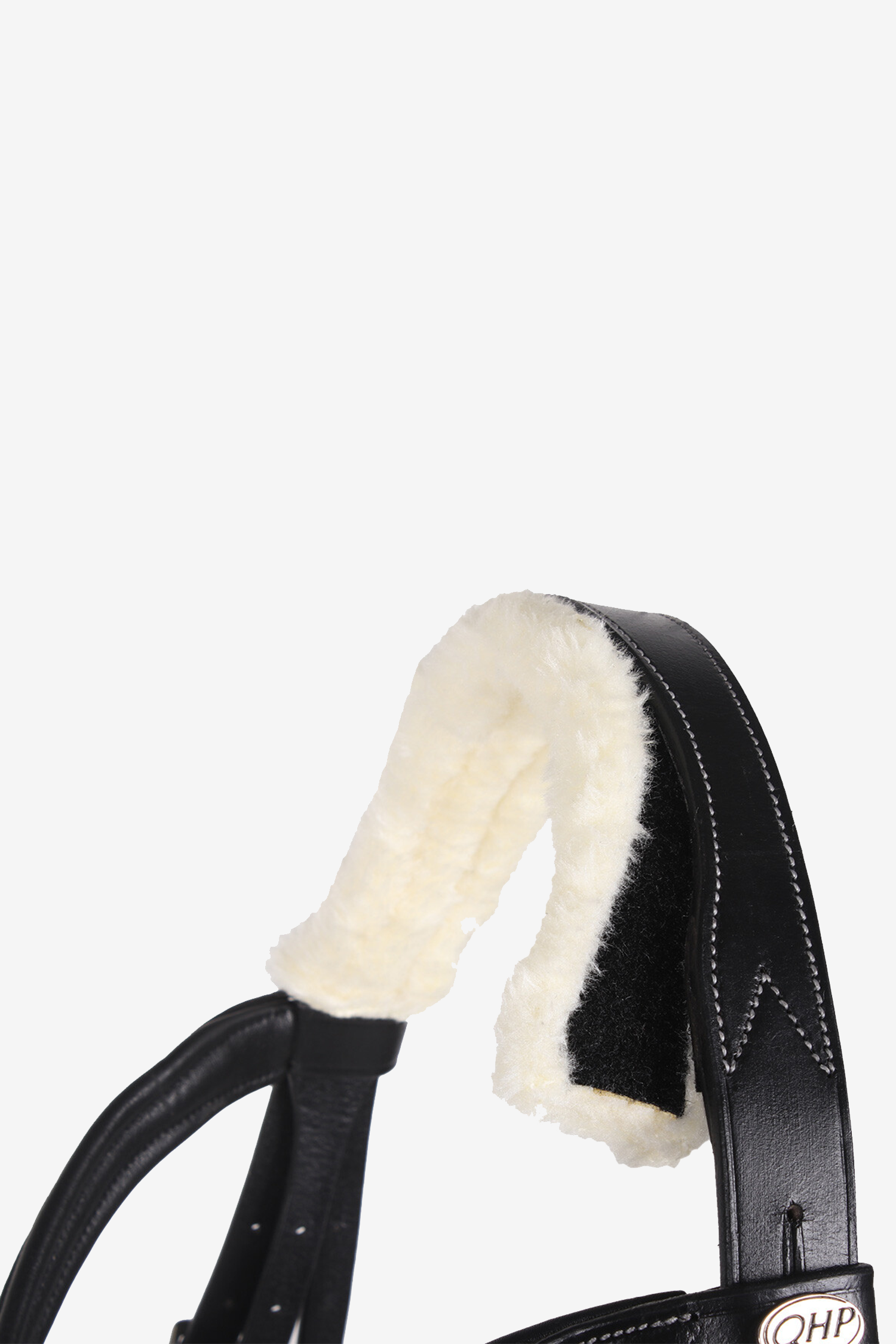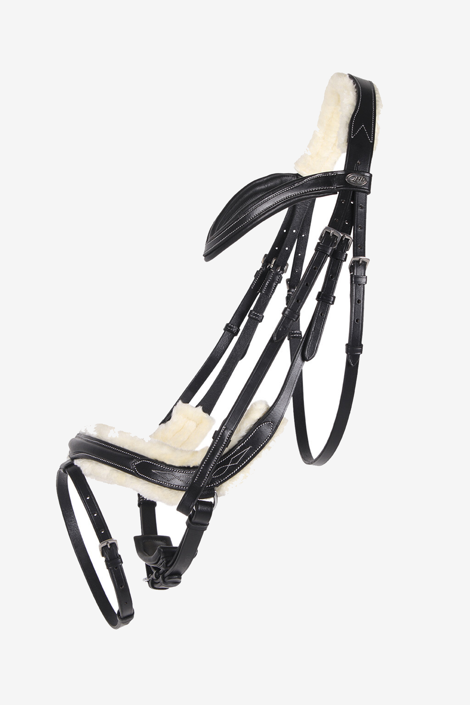 Den bølgeformede pandebånd, foret med kalveskind, fuldender det elegante look. Leveres komplet med matchende tøjler og kan kombineres med øvrige produkter i Ontario-serien for et stilrent helhedsindtryk.
