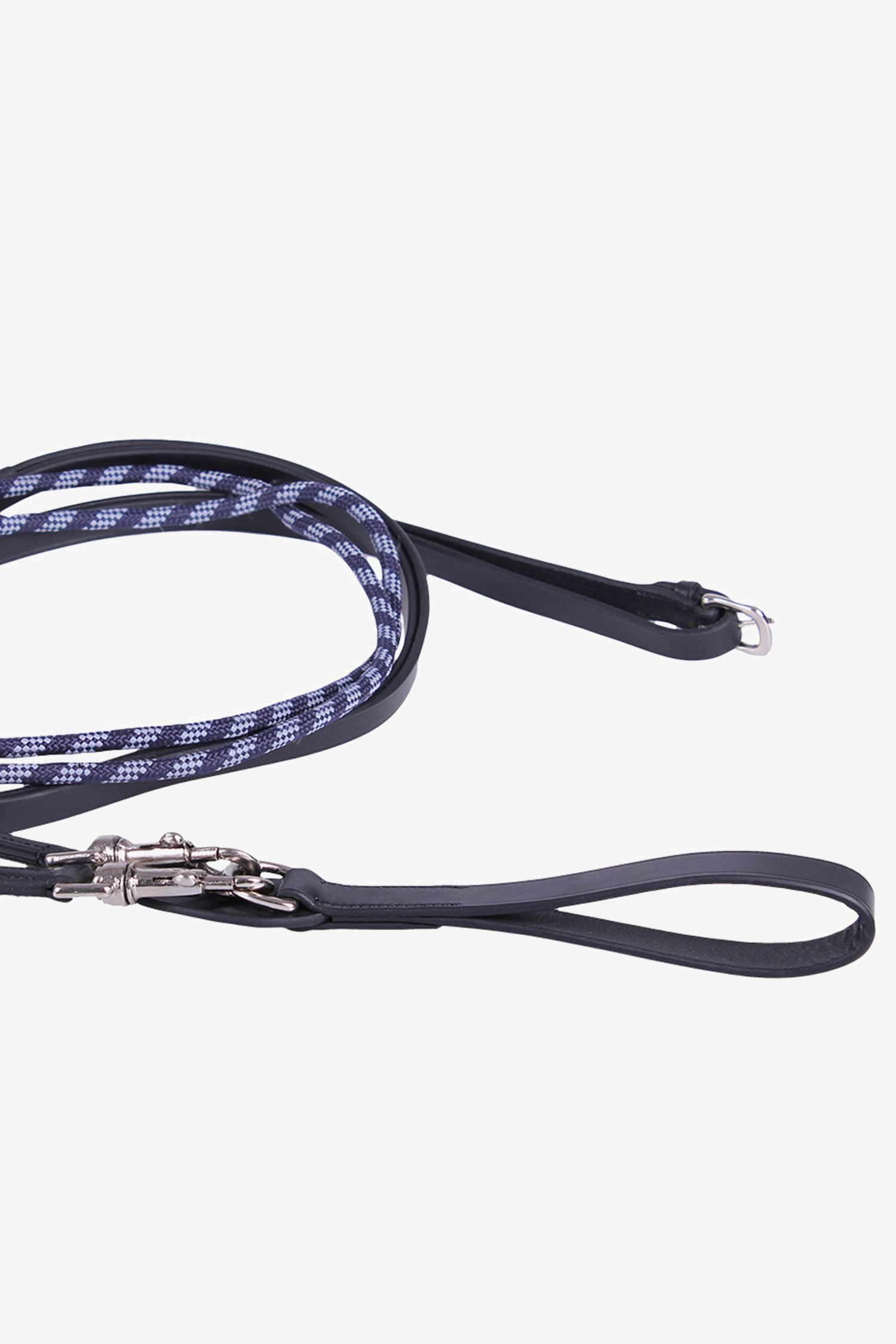 Fremstillet i blødt og slidstærkt læder med en tofarvet polypropylenline, der giver både holdbarhed og et elegant udseende. Den er udstyret med en gjordløkke med D-ring for nem fastgørelse samt to kraftige sølvfarvede kroge, som gør det let at fastgøre tøjlerne til biddet.