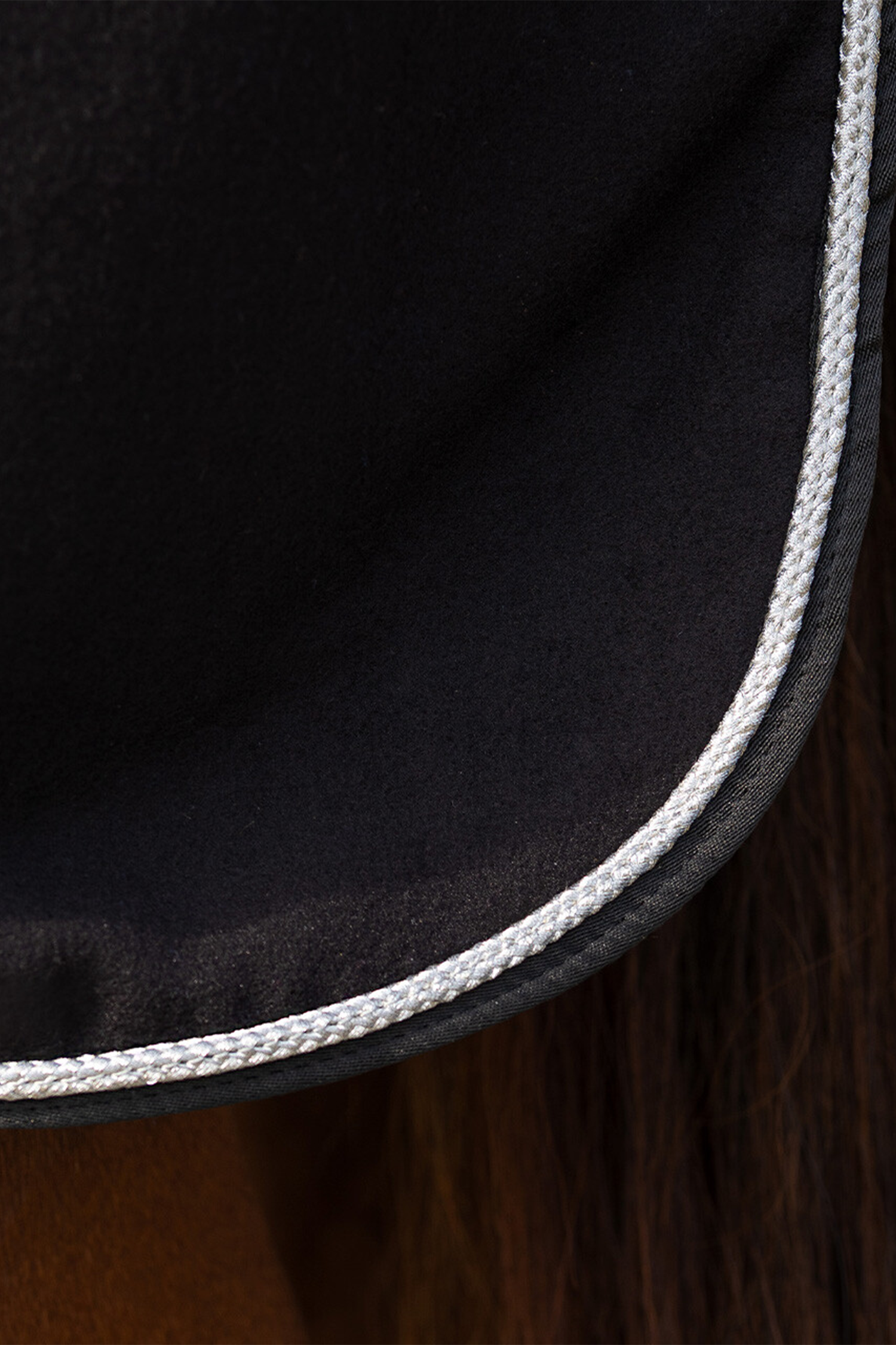 Detaljer som sølvfarvet paspolering og dekorativt emblem giver dækkenet et luksuriøst og stilrent udtryk – perfekt til både hverdag og stævne.