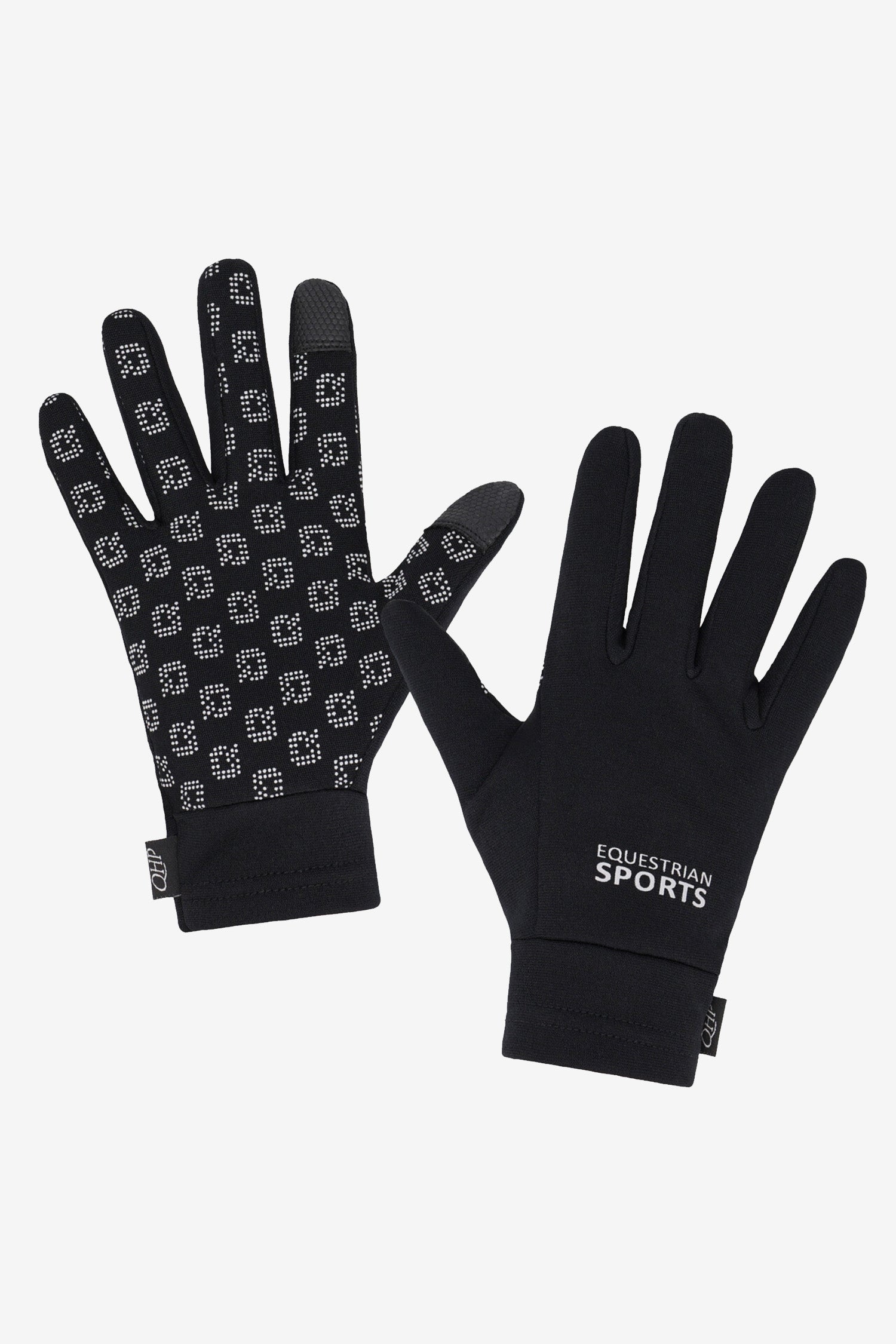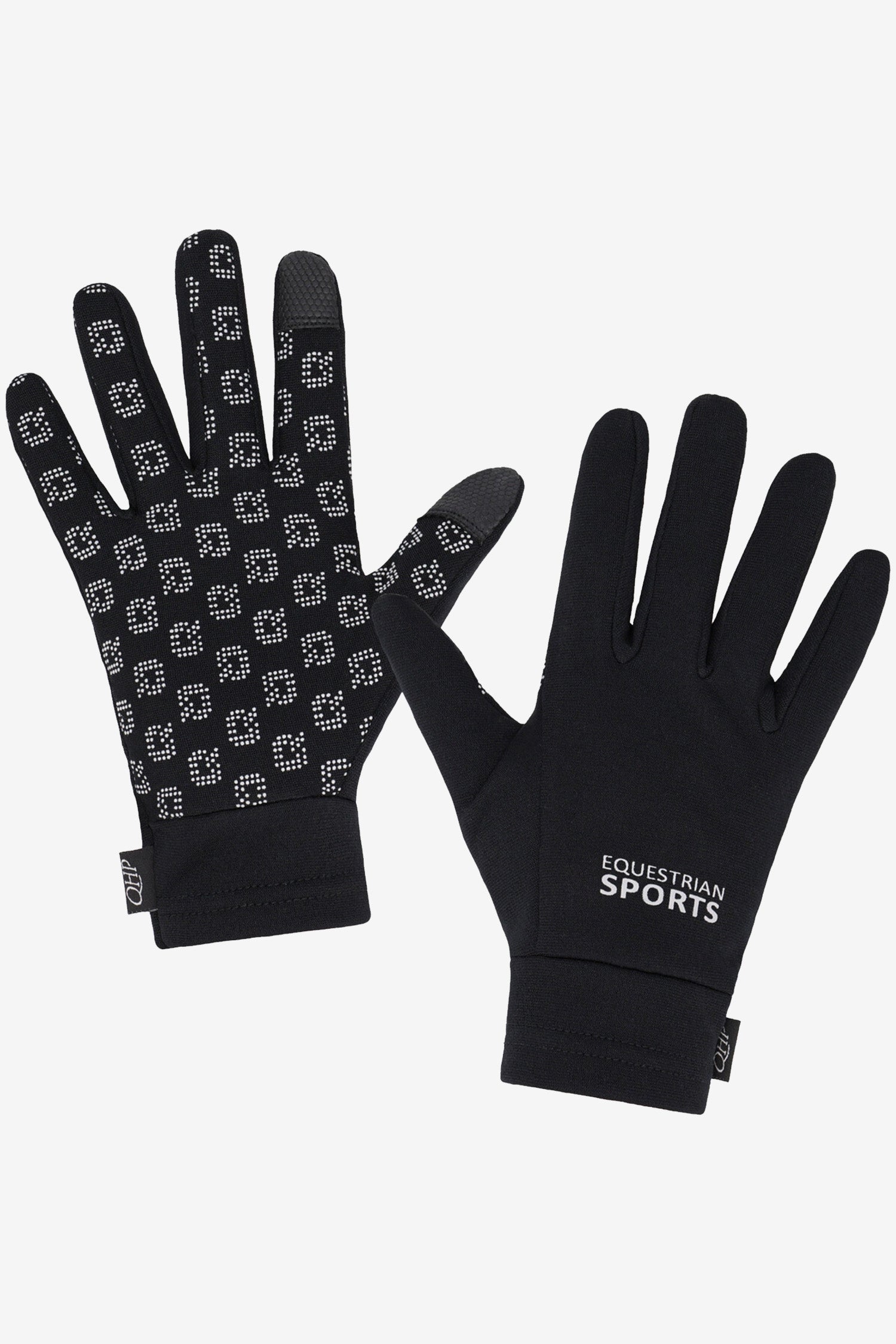 Takket være det smarte specialstof på pegefinger og tommelfinger kan du nemt bruge din mobiltelefon uden at tage handskerne af. Indersiden er udstyret med et silikone-mønster, der giver dig et sikkert greb om tøjlerne, mens det stilfulde Equestrian Sports-print på håndryggen giver et sporty og trendy look.
