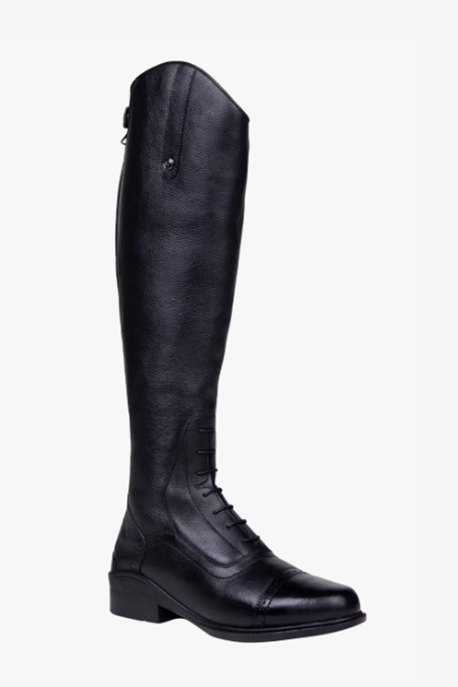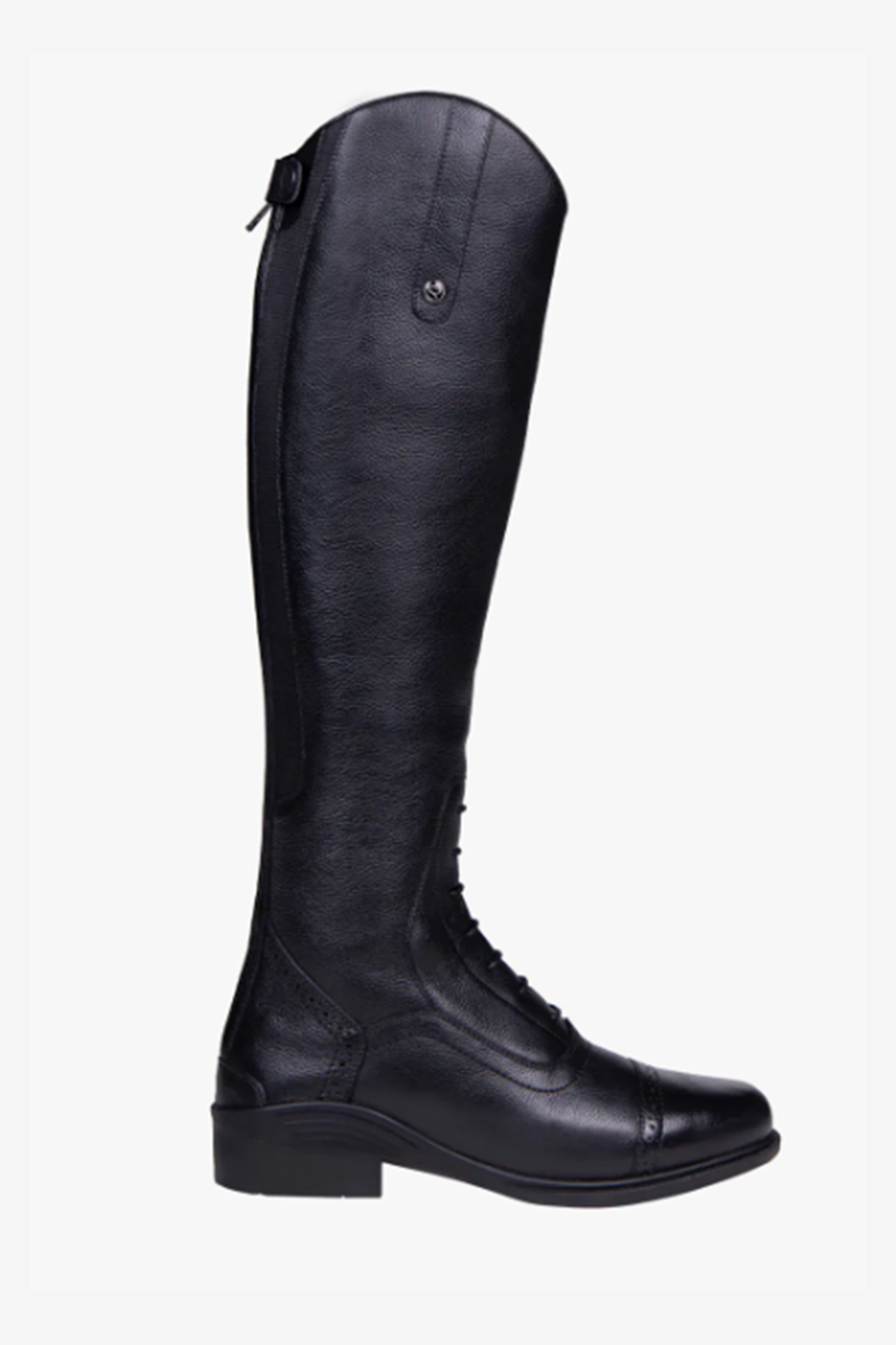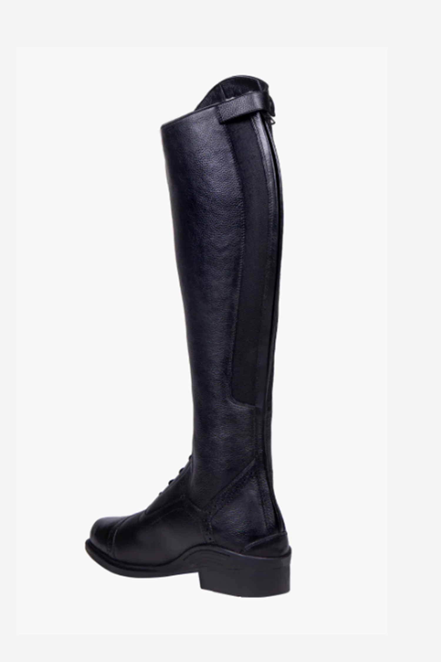 Den dekorative lynlås foran og de flotte sømdetaljer giver støvlen et elegant og moderne udtryk. Med forstærkning ved tå og hæl, sporrholder og kraftig gummisål er den bygget til både holdbarhed og stabilitet – perfekt til aktive ryttere, der ønsker både stil og funktion i én støvle.