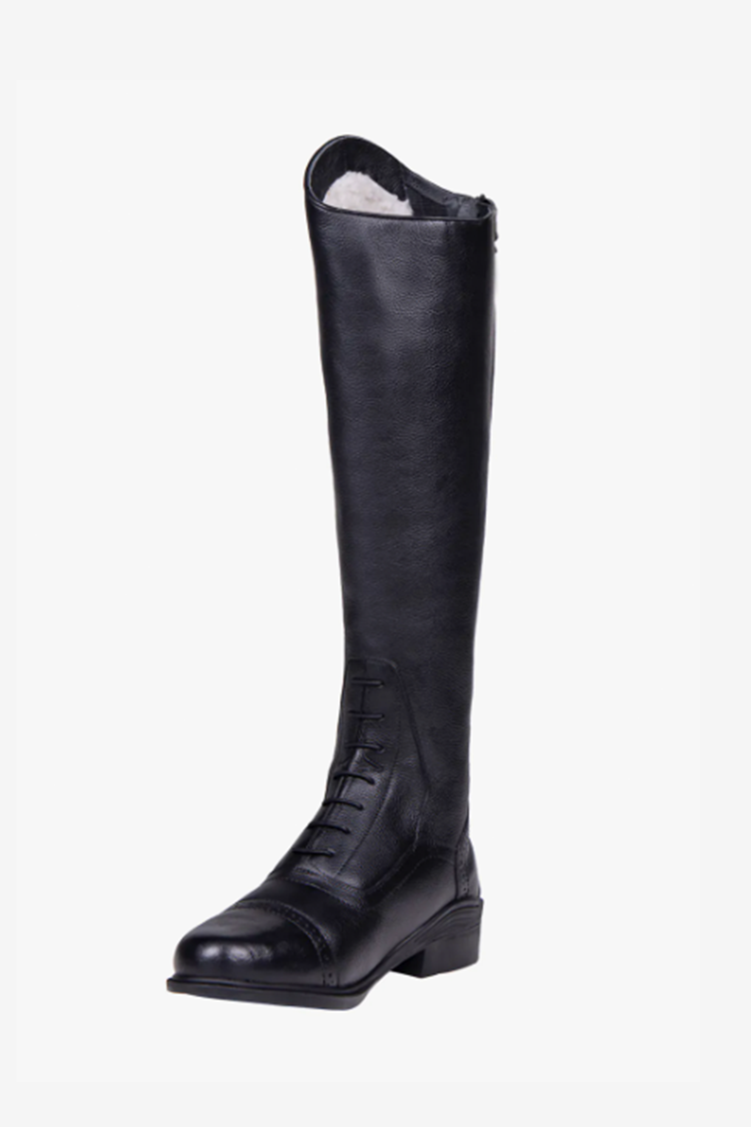 Stil, komfort og funktion mødes i denne slidstærke ridestøvle i ægte læder, udviklet til kolde dage i sadlen. Det bløde imiterede pelsfor holder fødderne varme og komfortable, mens lynlåsen bagpå med elastikindsats giver en fleksibel pasform, der tilpasser sig benet.